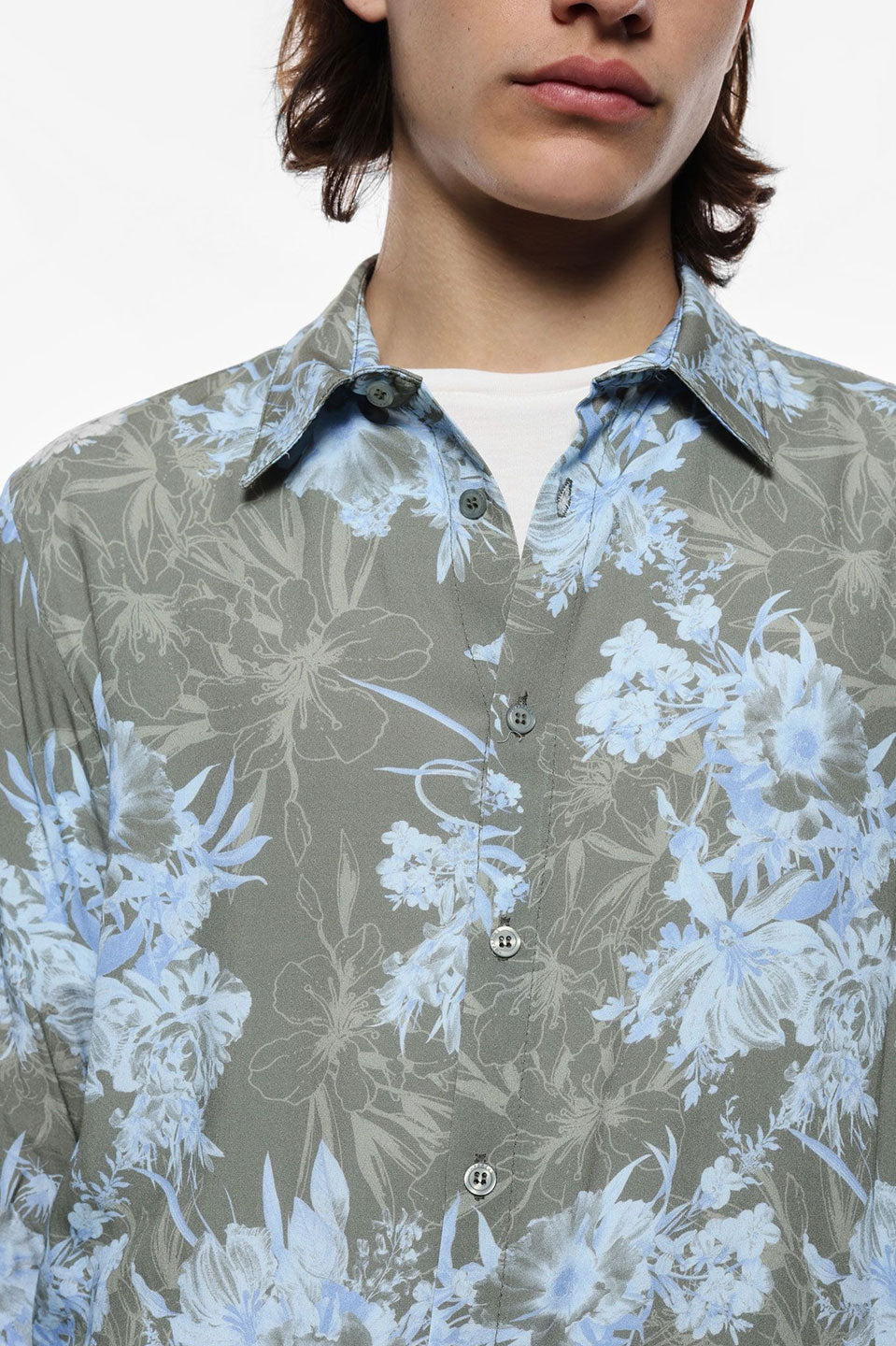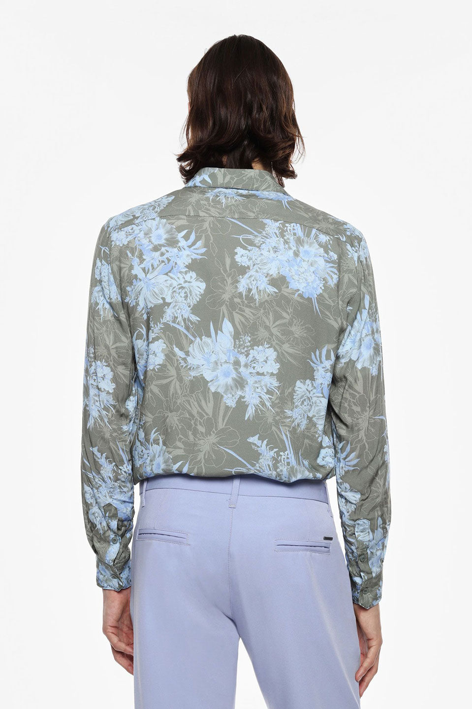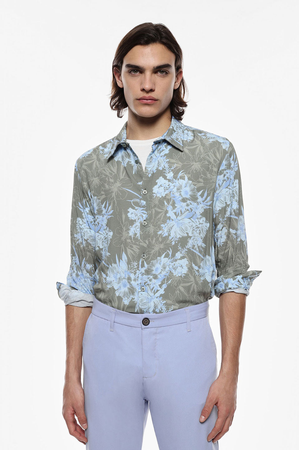 Ανδρικό πουκάμισο εμπριμέ φλοράλ χακί-γαλάζιο IMPERIAL MAN