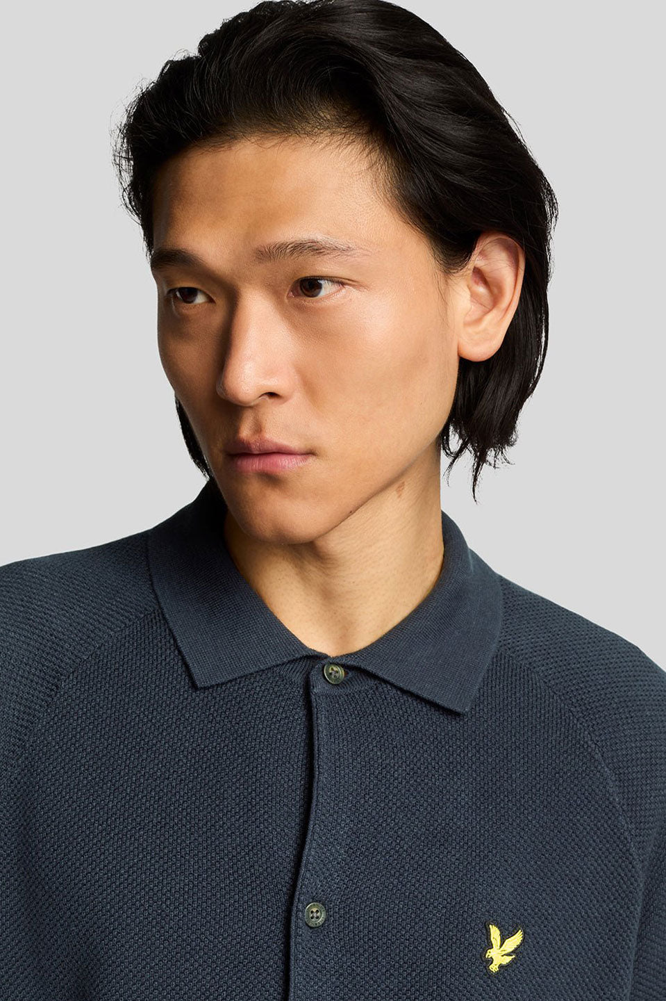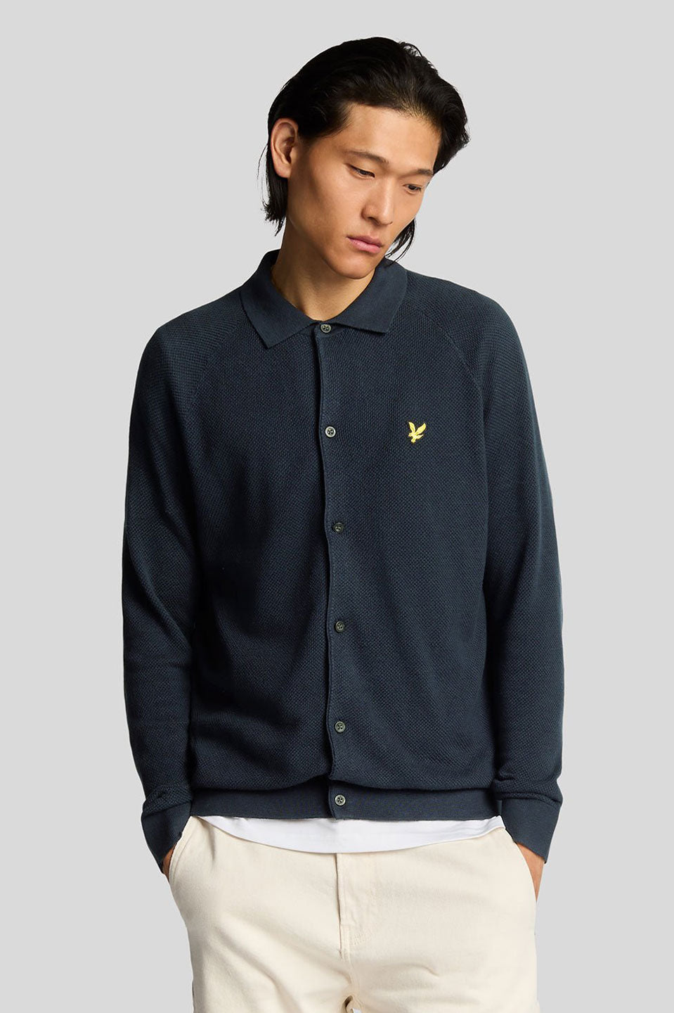 Ανδρικό Μακρυμάνικο πλεκτό πουκάμισο σκούρο μπλε Lyle & Scott