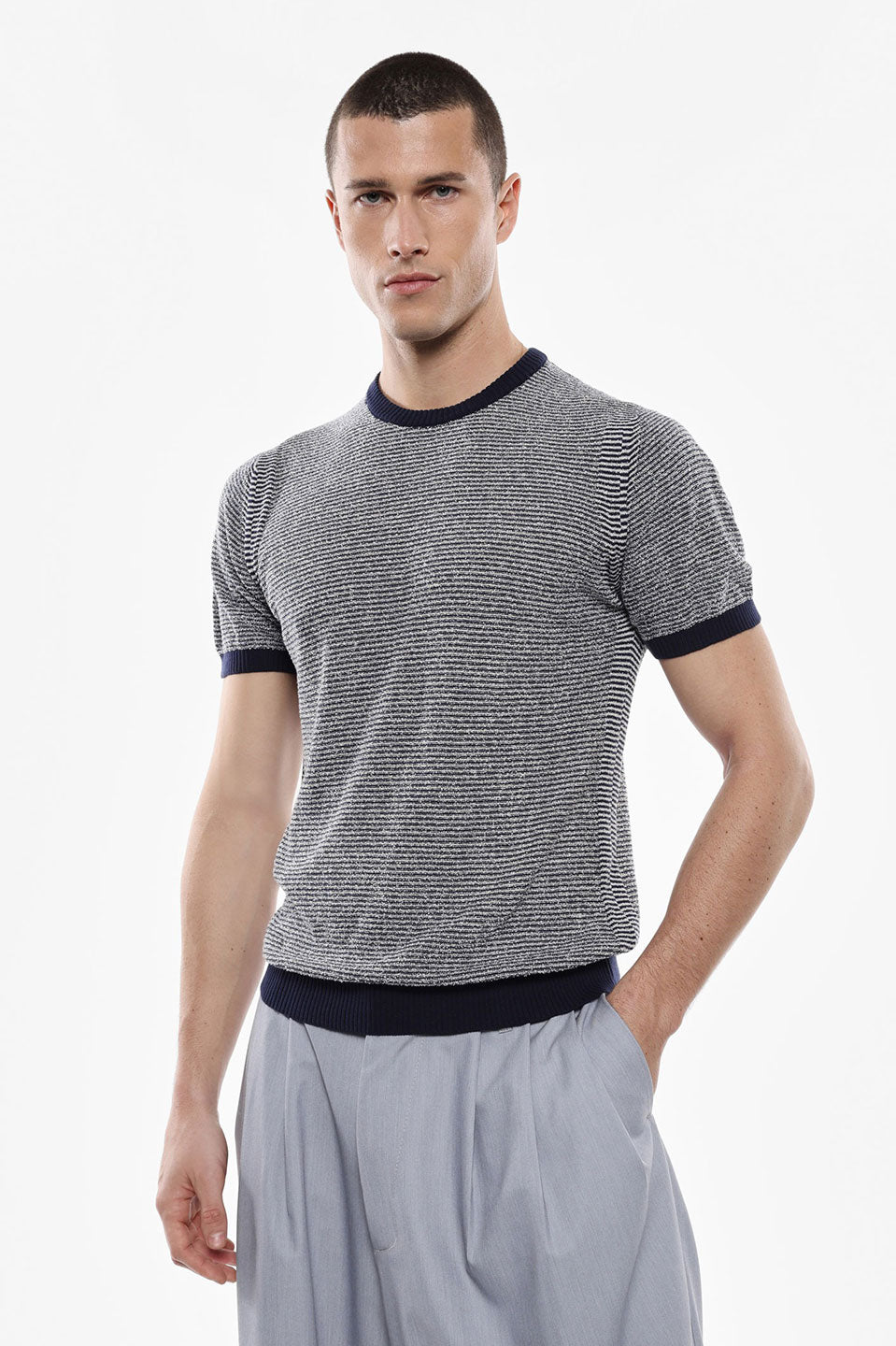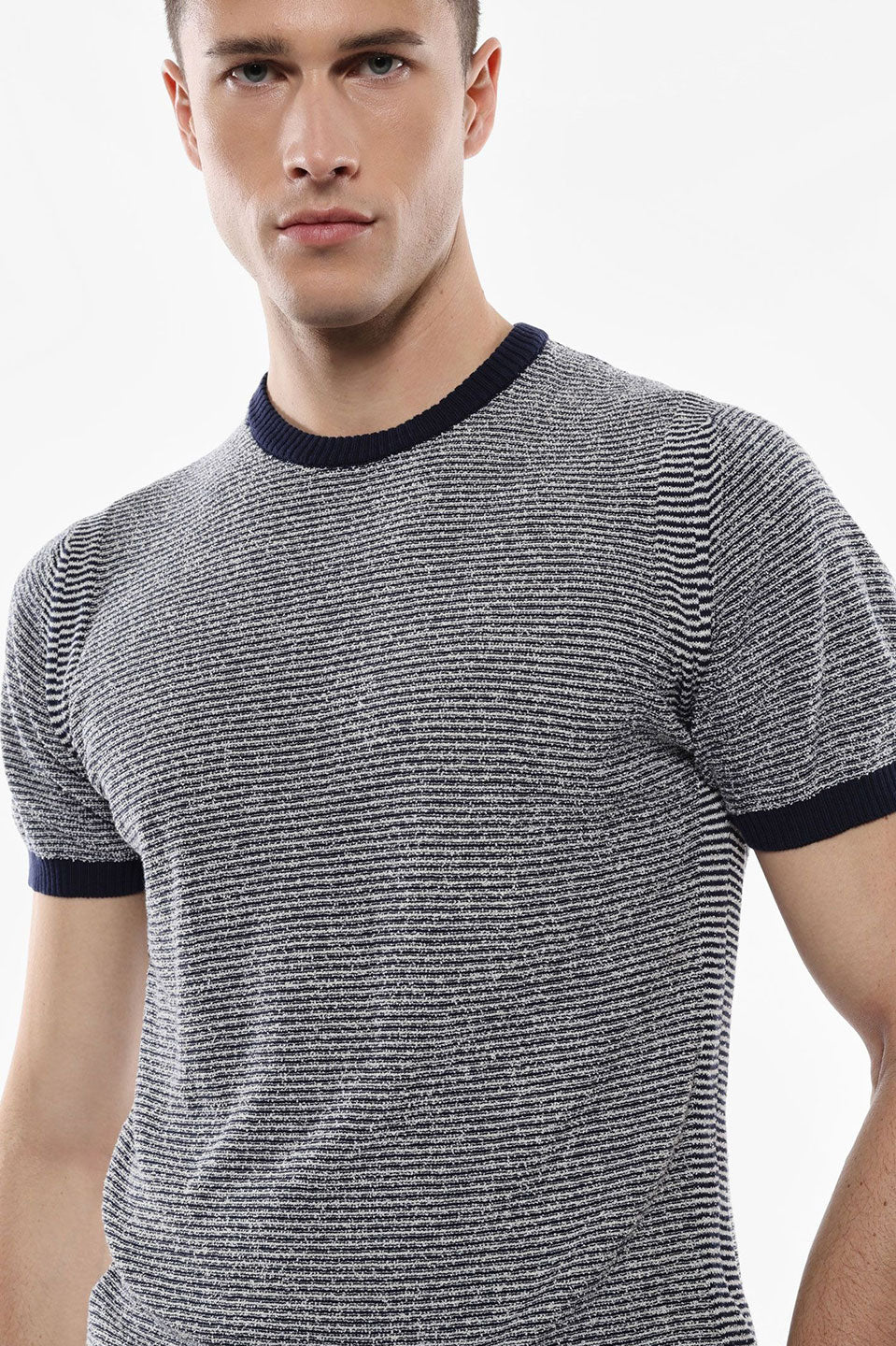 Ανδρική κοντομάνικη μπλούζα πλεκτή μπλε-λευκή IMPERIAL MAN