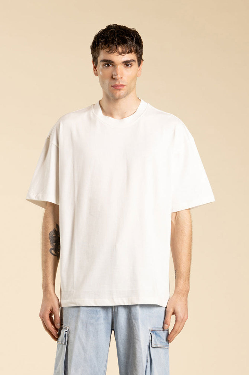 Ανδρική Κοντομάνικη μπλούζα σε φαρδιά γραμμή λευκή I'M BRIAN