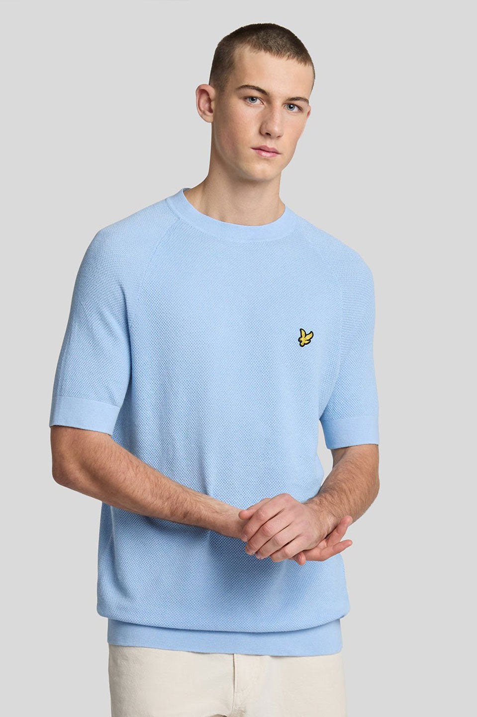 Ανδρική Κοντομάνικη πλεκτή μπλούζα γαλάζια Lyle & Scott