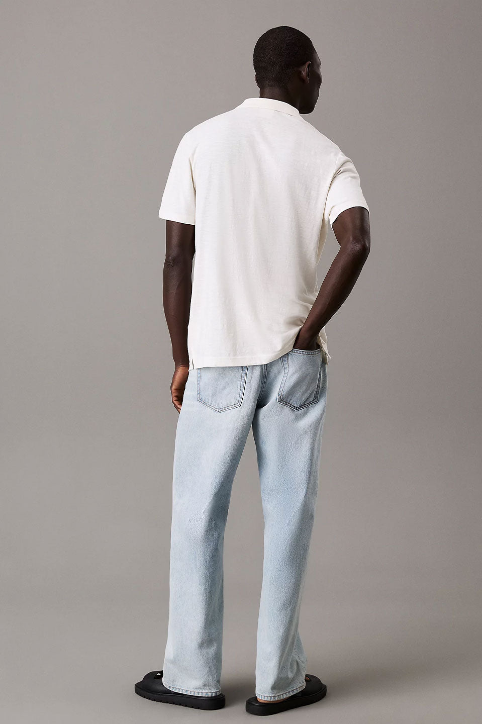 Ανδρική Πόλο μπλούζα λινό-βαμβάκι κανονική γραμμή λευκή Calvin Klein K10K114136YAS