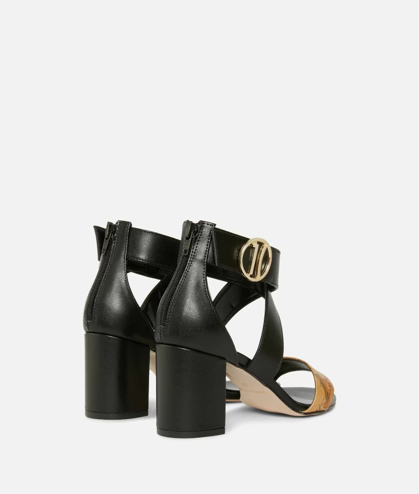 Πέδιλα μαύρα δερμάτινα με τακούνι Alviero Martini