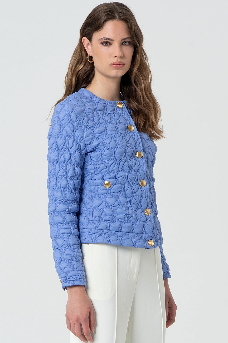 Γυναικείο πανωφόρι καπιτονέ μπλε Fracomina