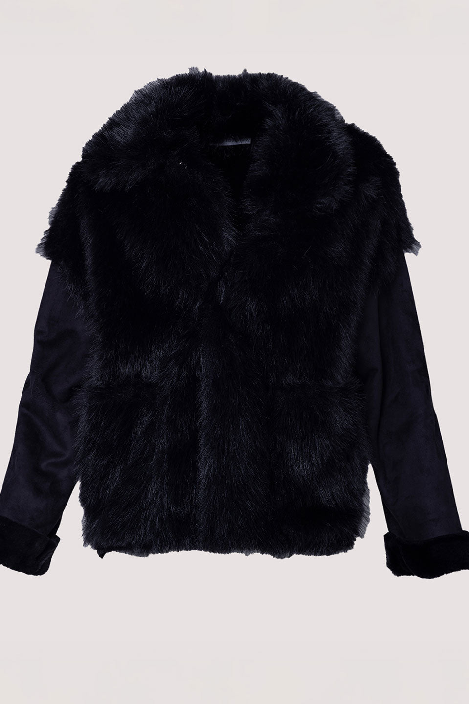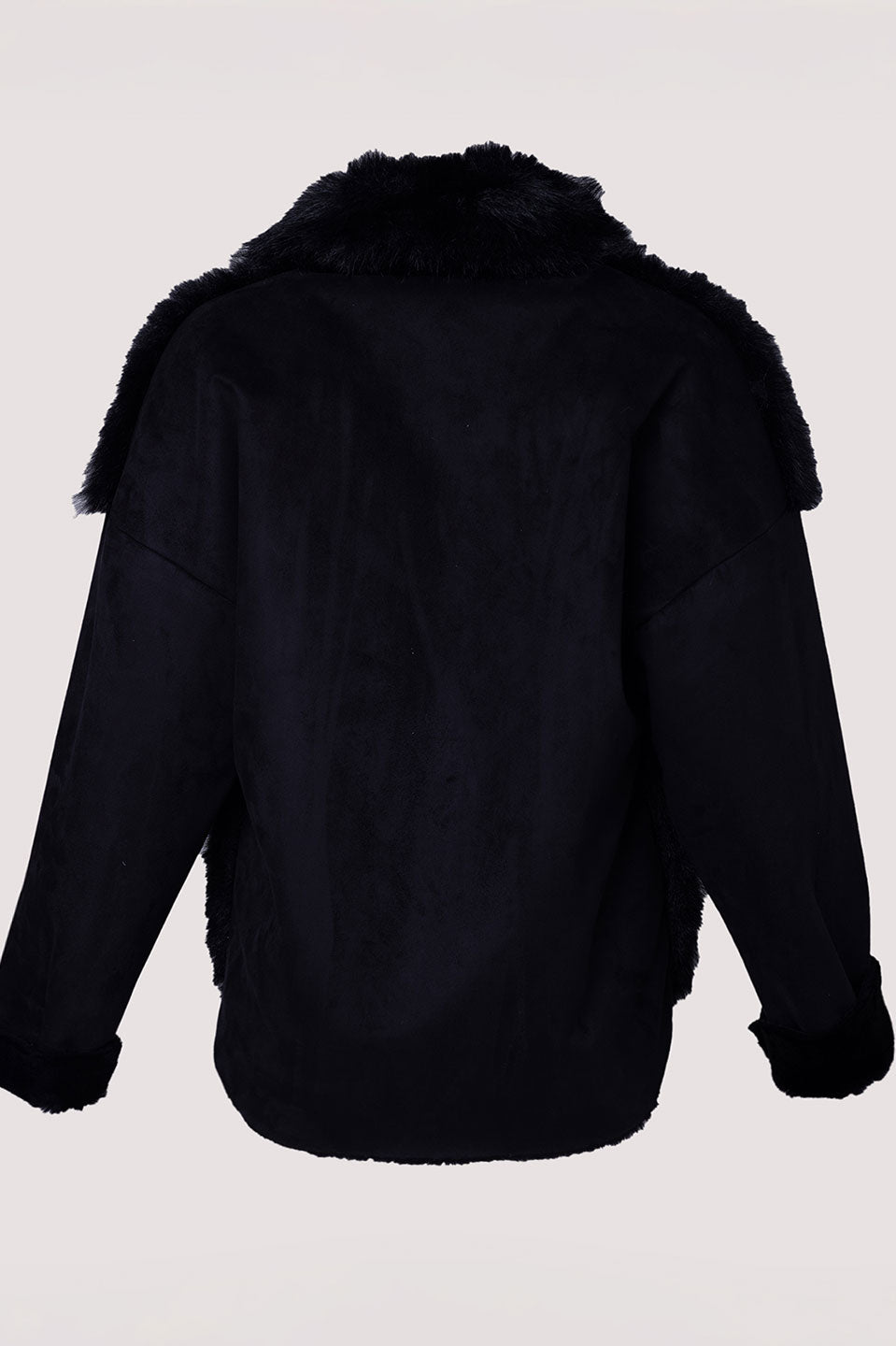 Γυναικείο πανωφόρι με γούνα μαύρο Motel