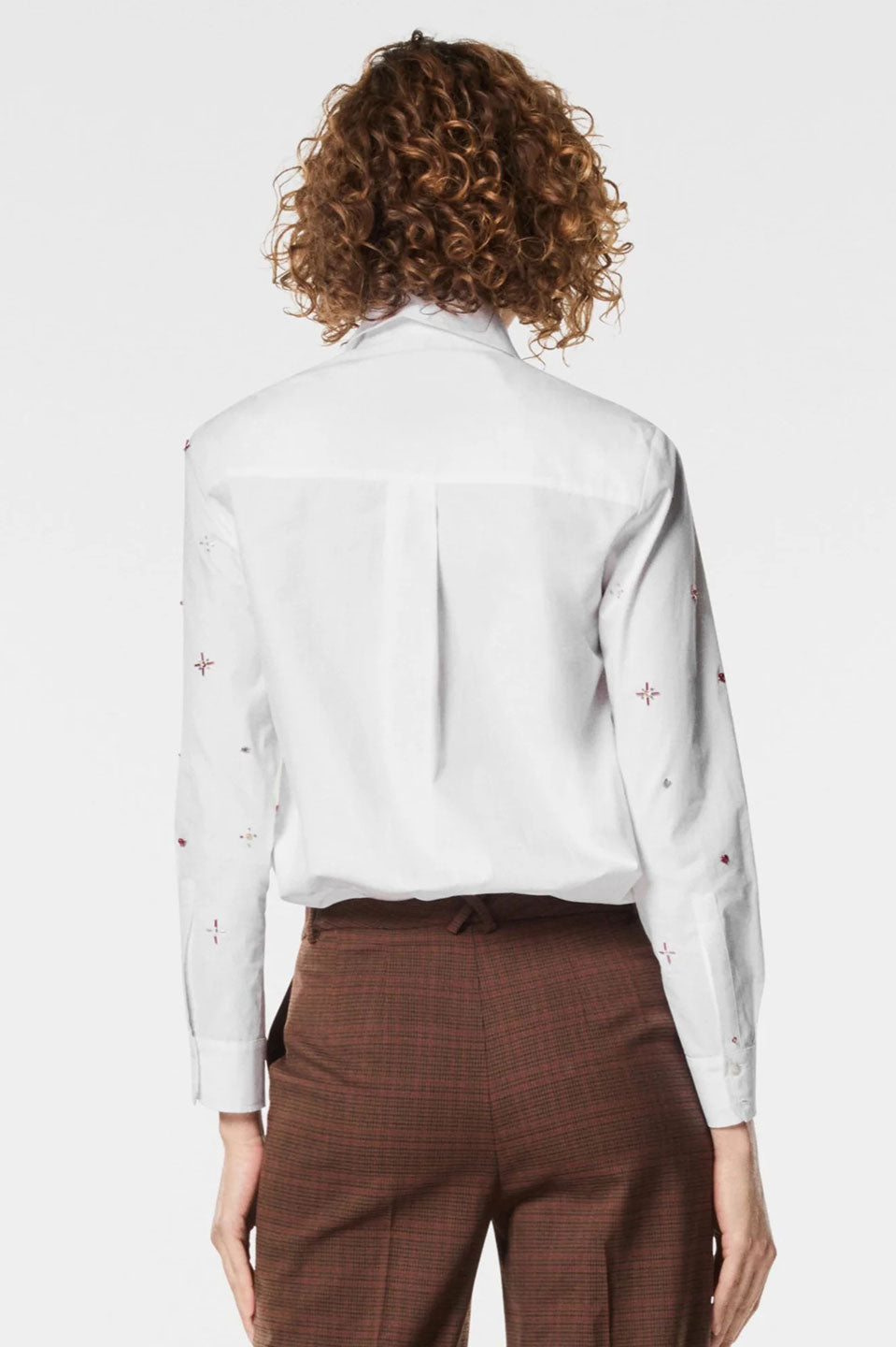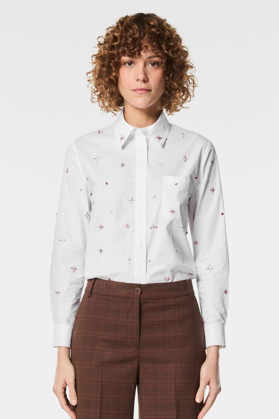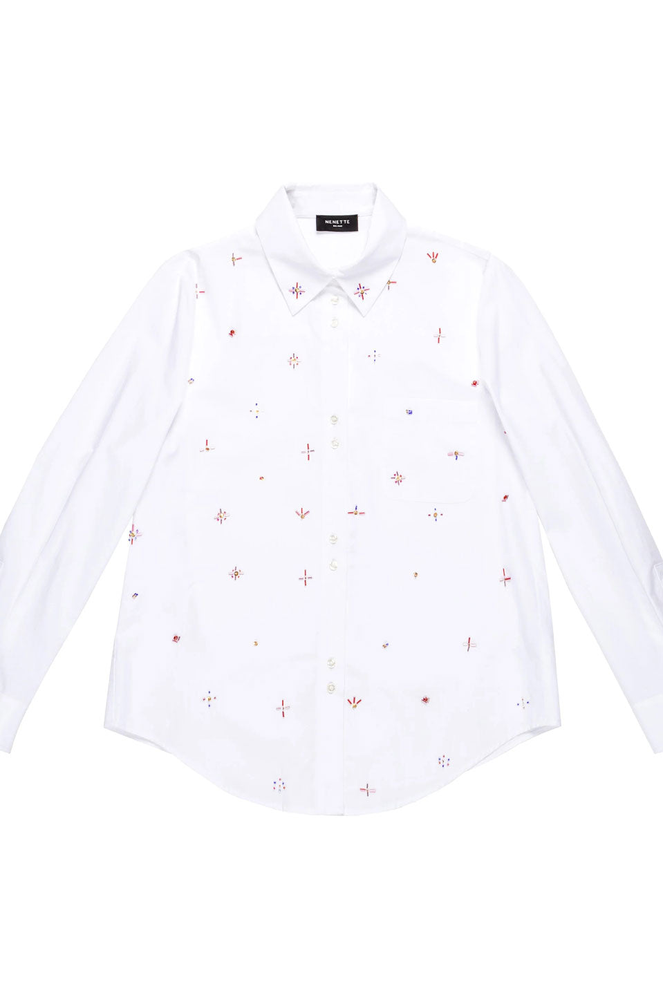 Γυναικείο πουκάμισο με κεντήματα και πέτρες λευκό Nenette