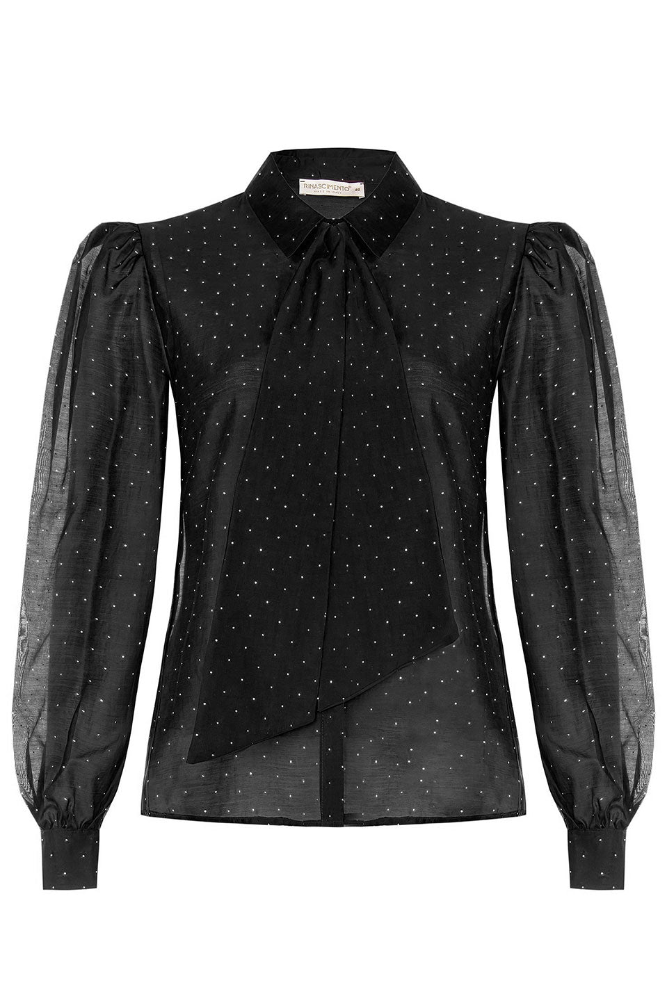 Γυναικεία μπλούζα ημιδιάφανη με φιόγκο μαύρη Rinascimento