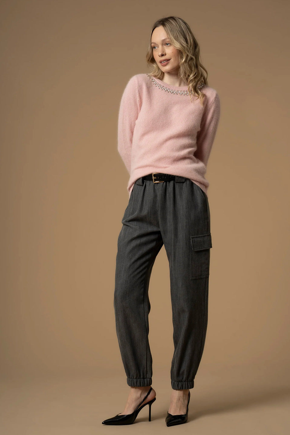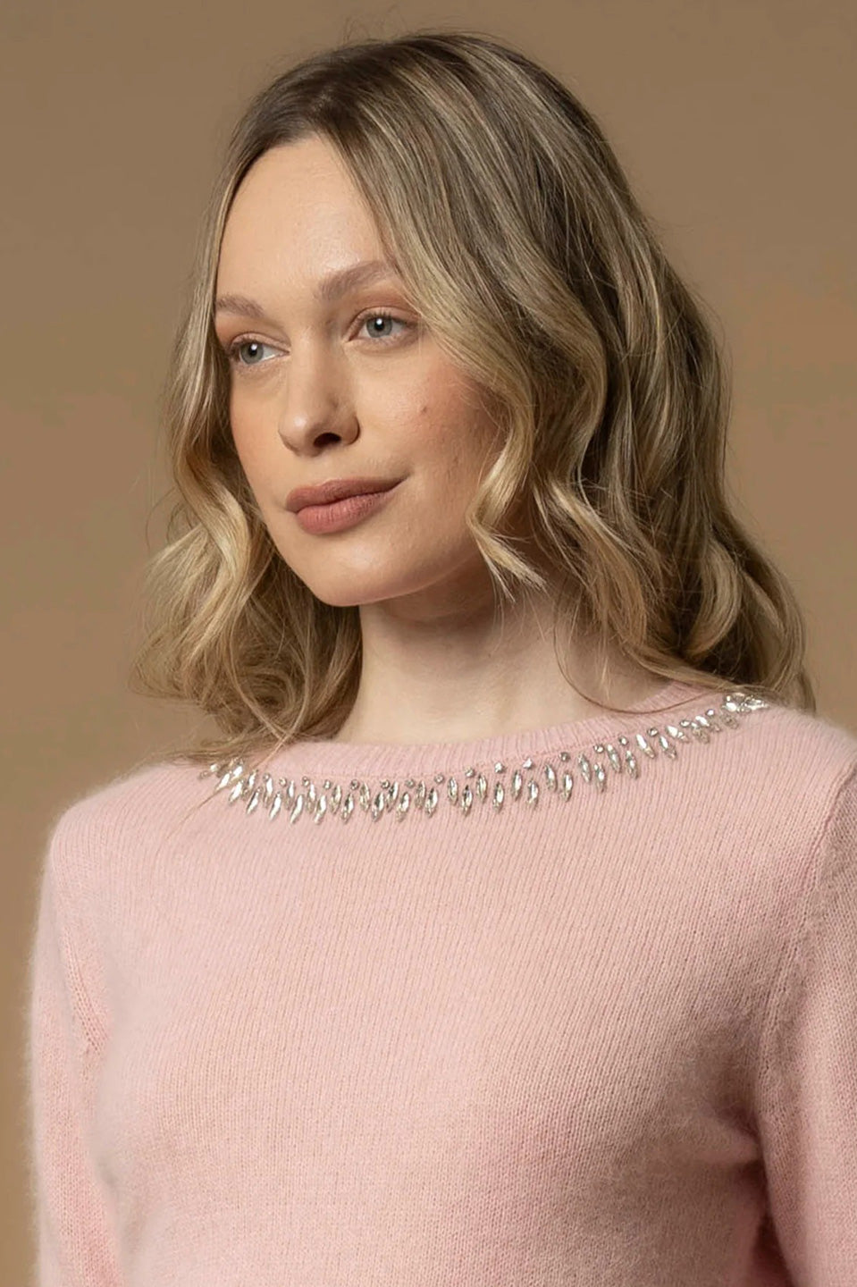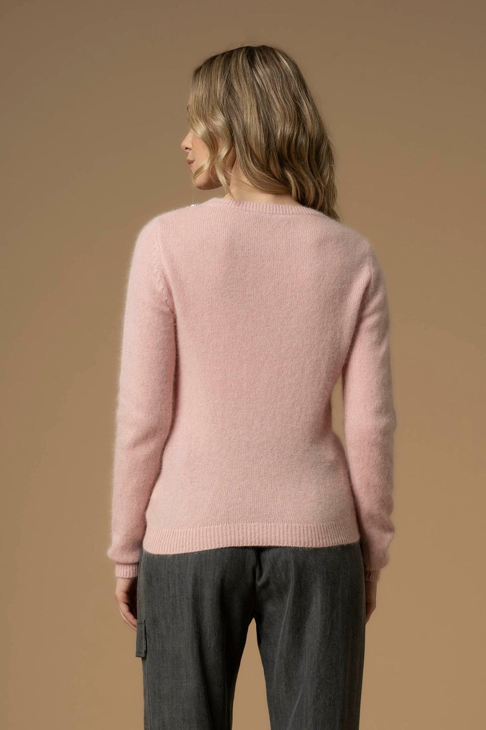 Γυναικεία μπλούζα πλεκτή με πέτρες ροζ Kocca