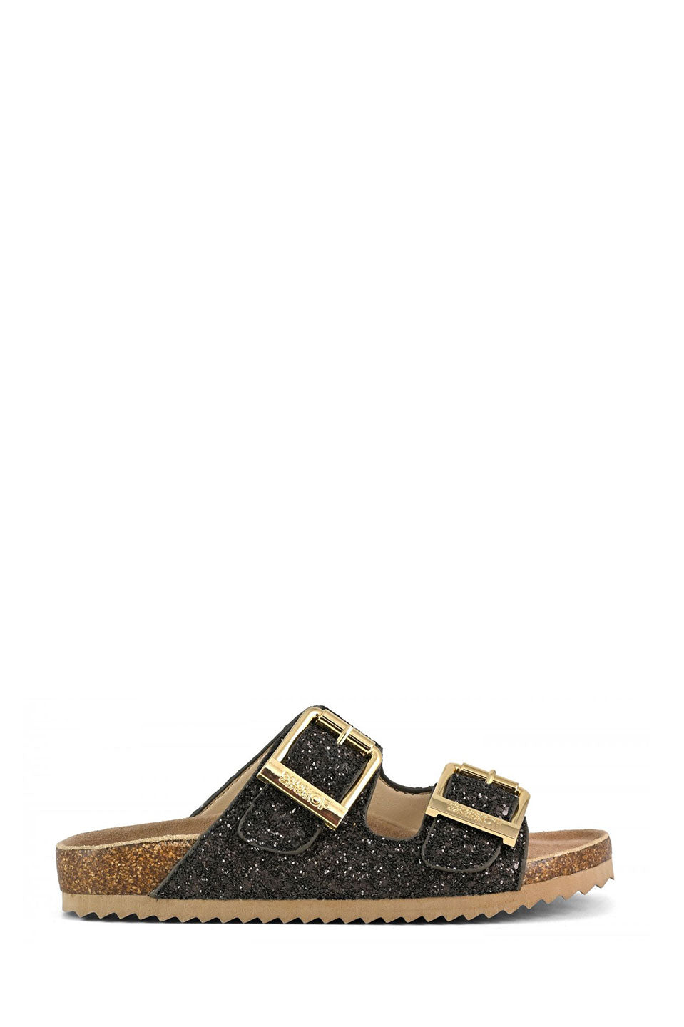 Γυναικεία πέδιλα με διπλά λουράκια glitter μαύρο Colors of California