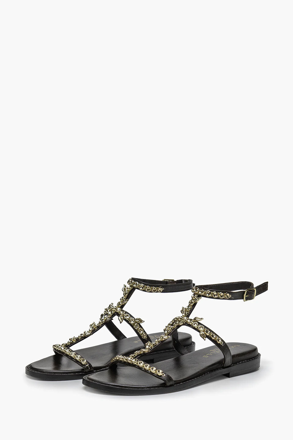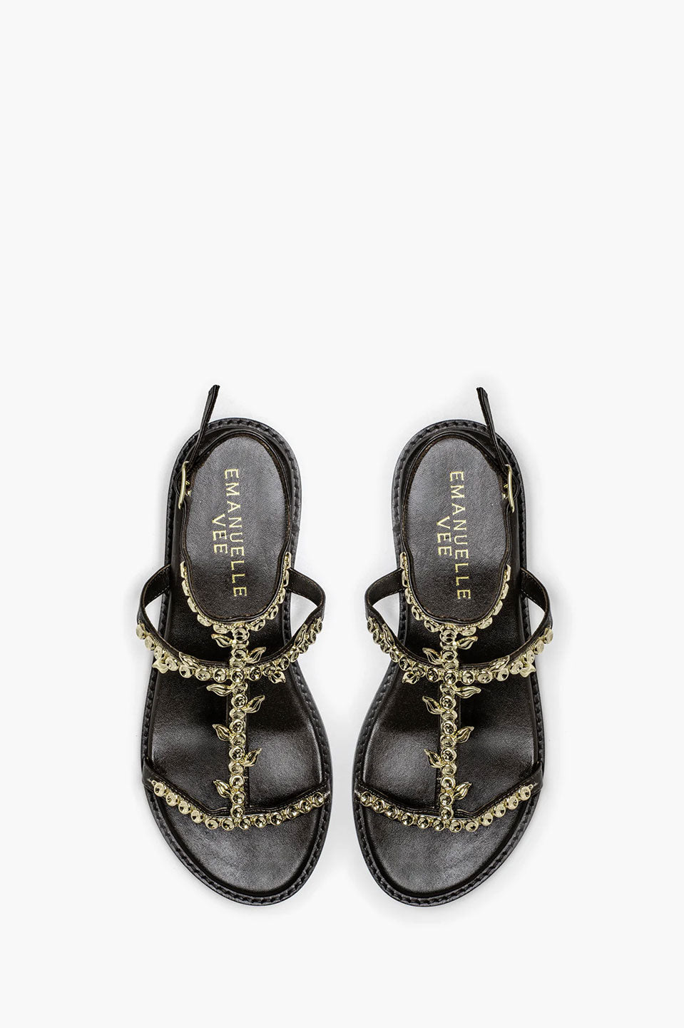 Γυναικεία Παπούτσια πέδιλα με στρας καφέ Emanuelle Vee