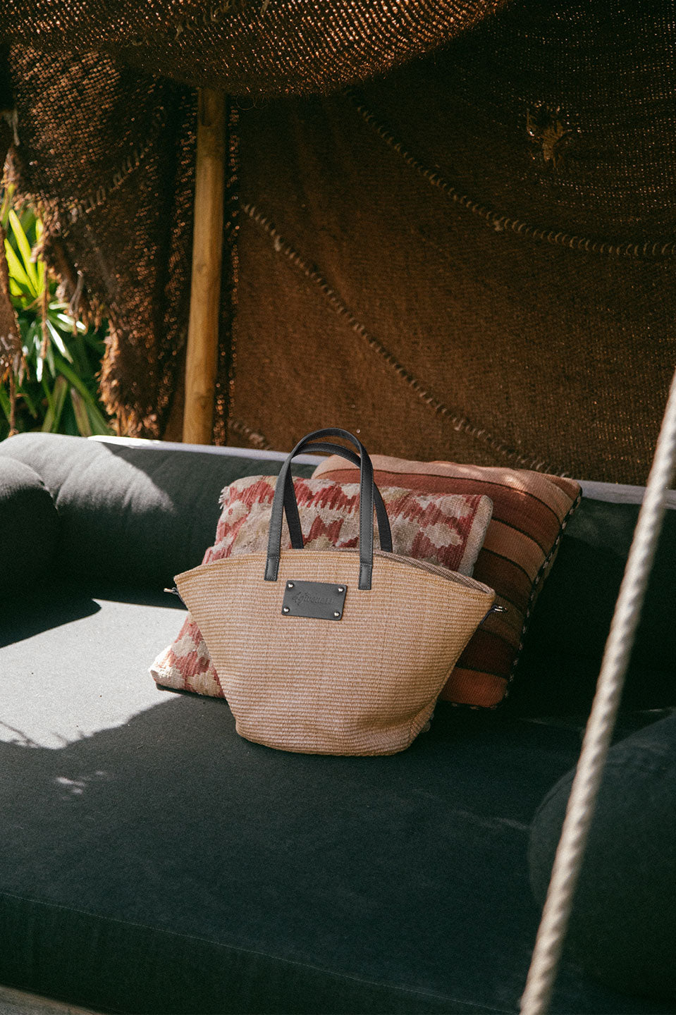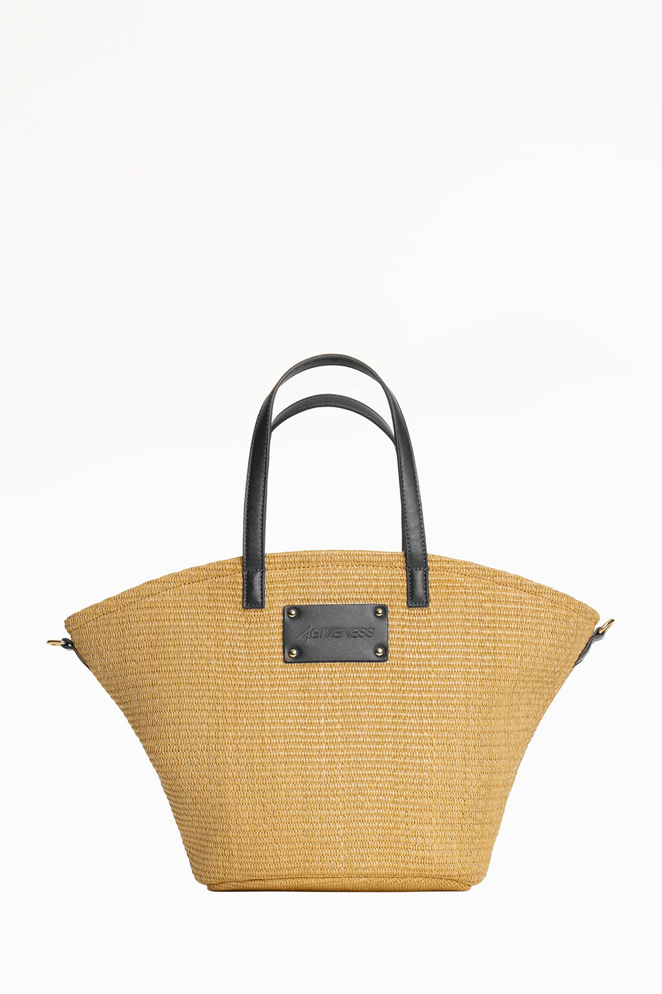Γυναικεία Τσάντα από raffia με μαύρες λεπτομέρειες 4Giveness