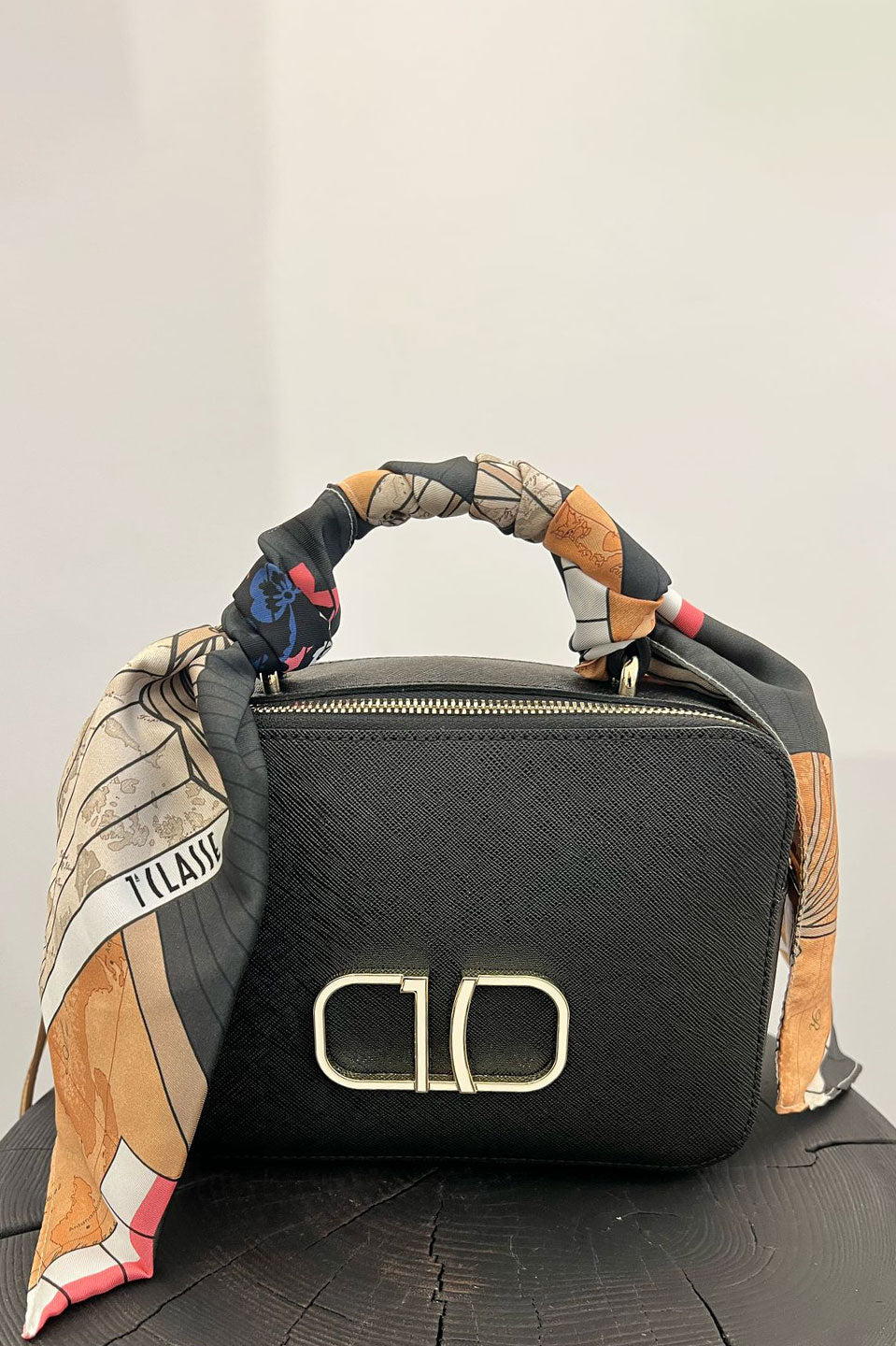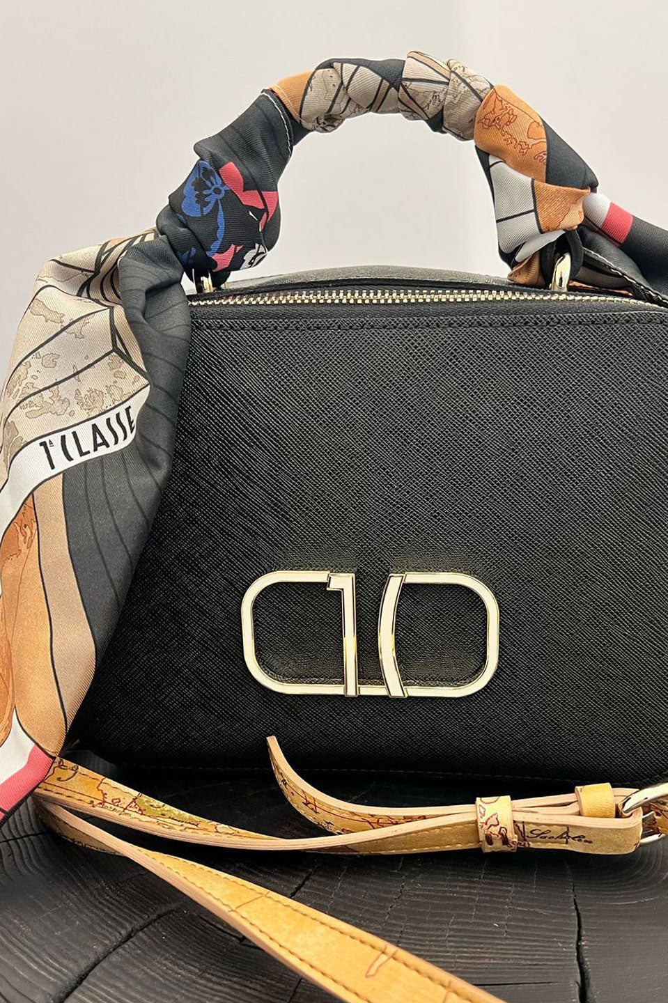 Γυναικεία Τσάντα ώμου μαύρη με χρωματιστό φουλάρι Alviero Martini