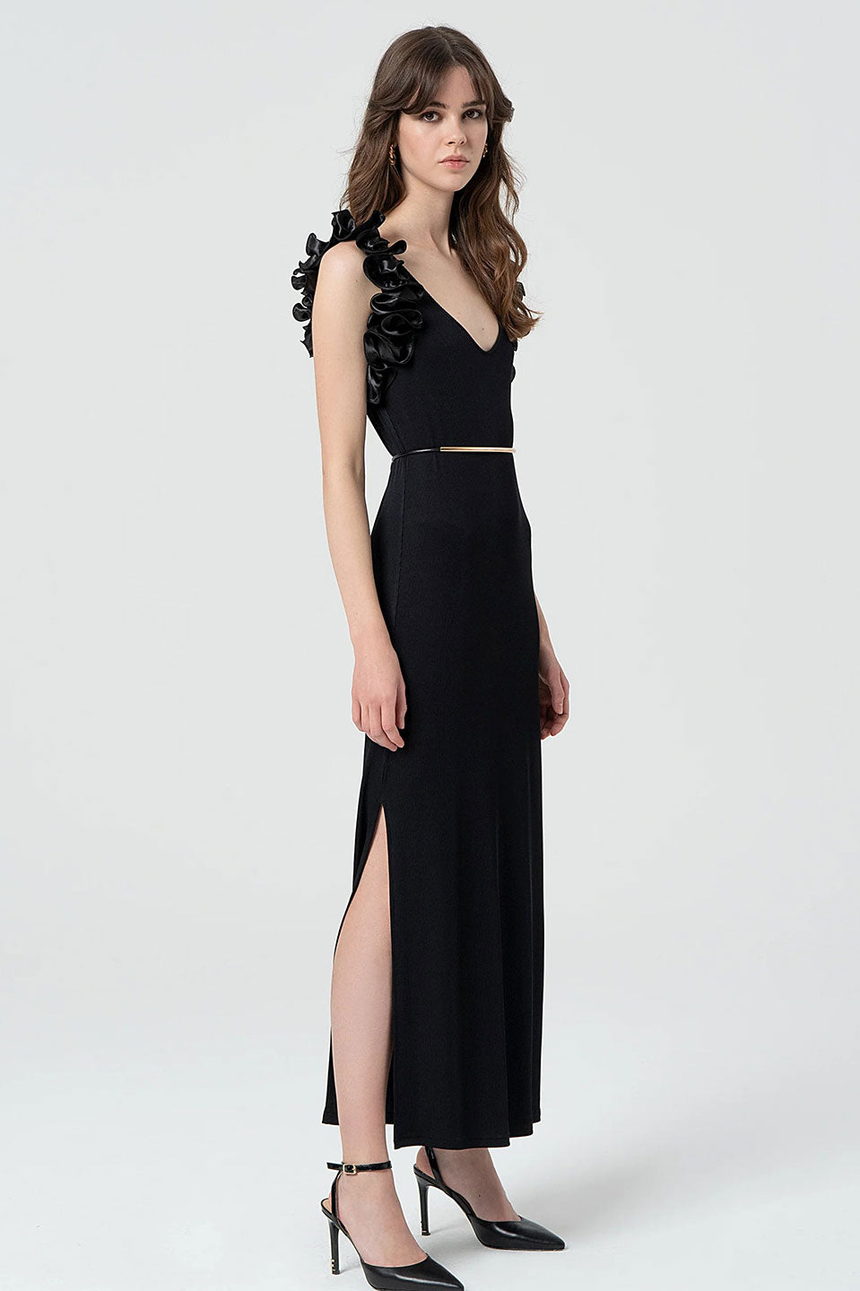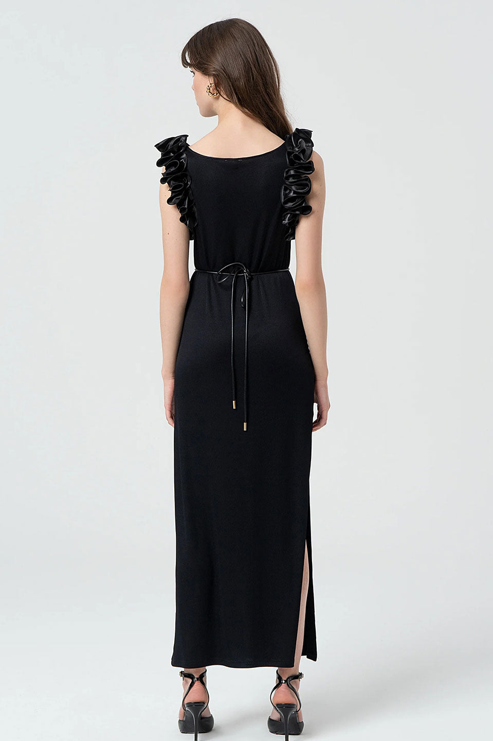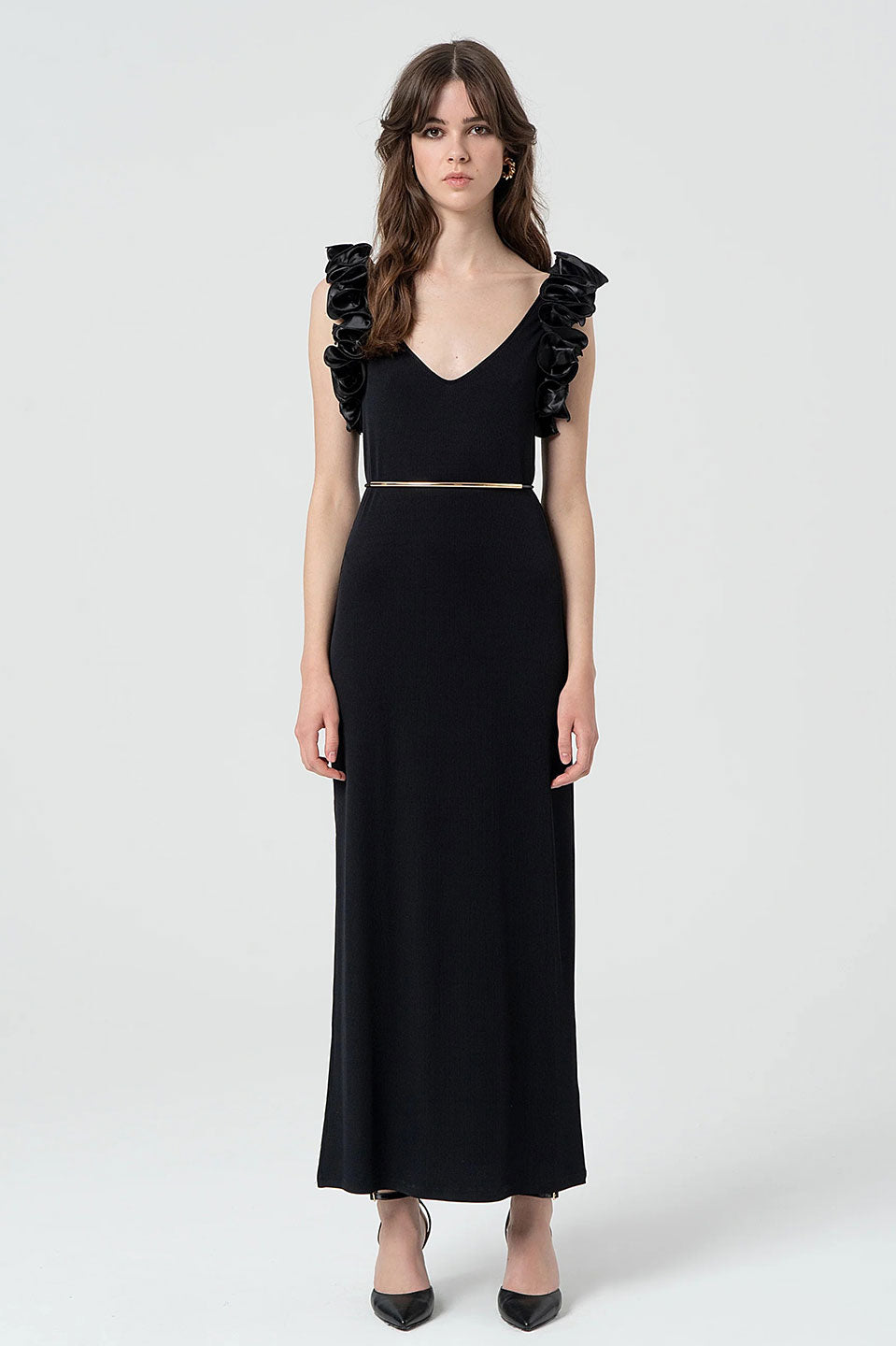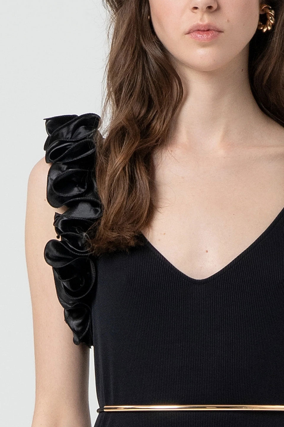 Γυναικείο φόρεμα με βολάν στους ώμους μαύρο Fracomina