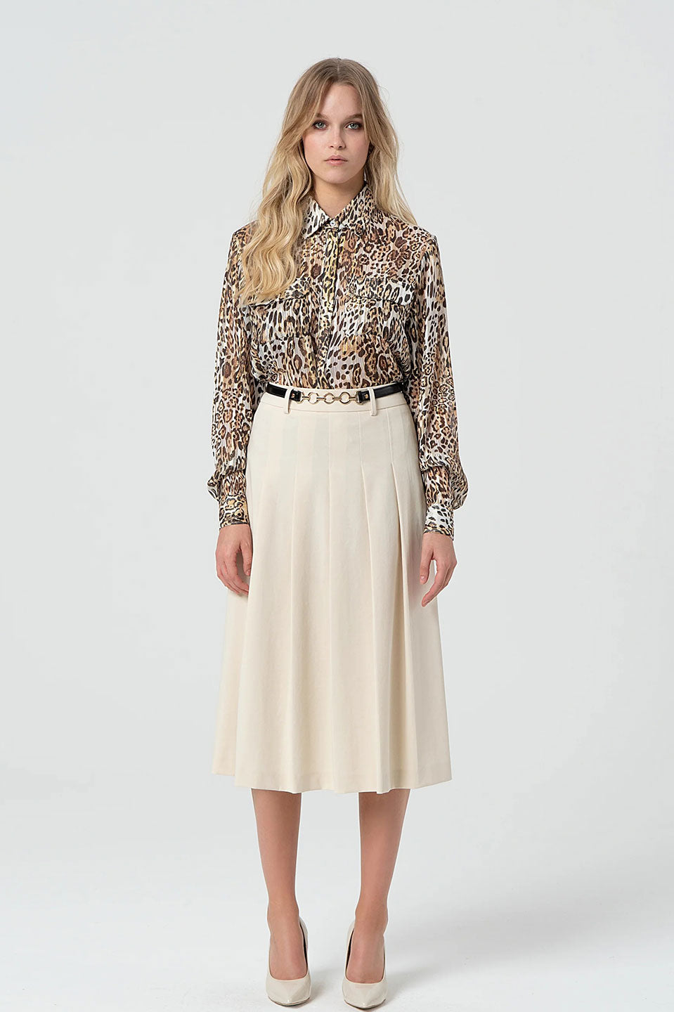 Γυναικεία φούστα midi με πιέτες μπεζ Fracomina