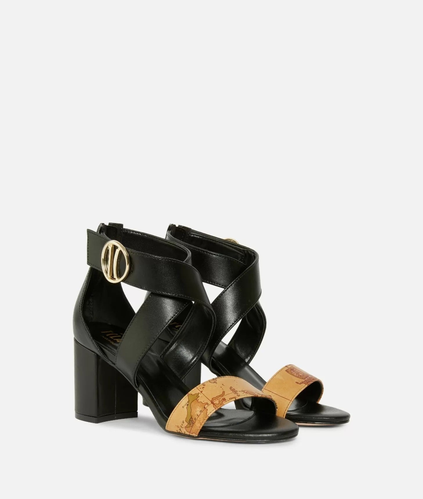 Πέδιλα μαύρα δερμάτινα με τακούνι Alviero Martini