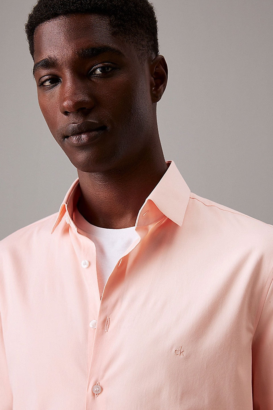 Ανδρικό Πουκάμισο ποπλίνα slim fit ροδακινί Calvin Klein K10K108229TEK