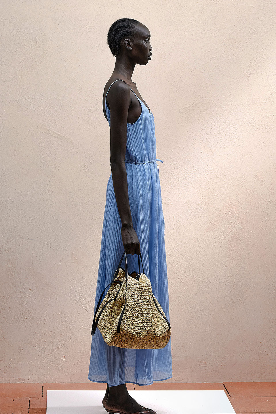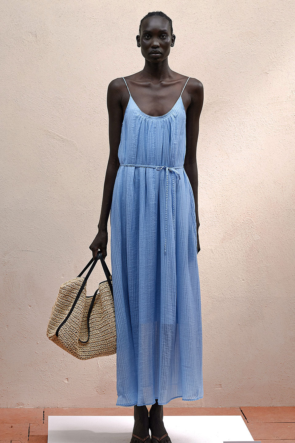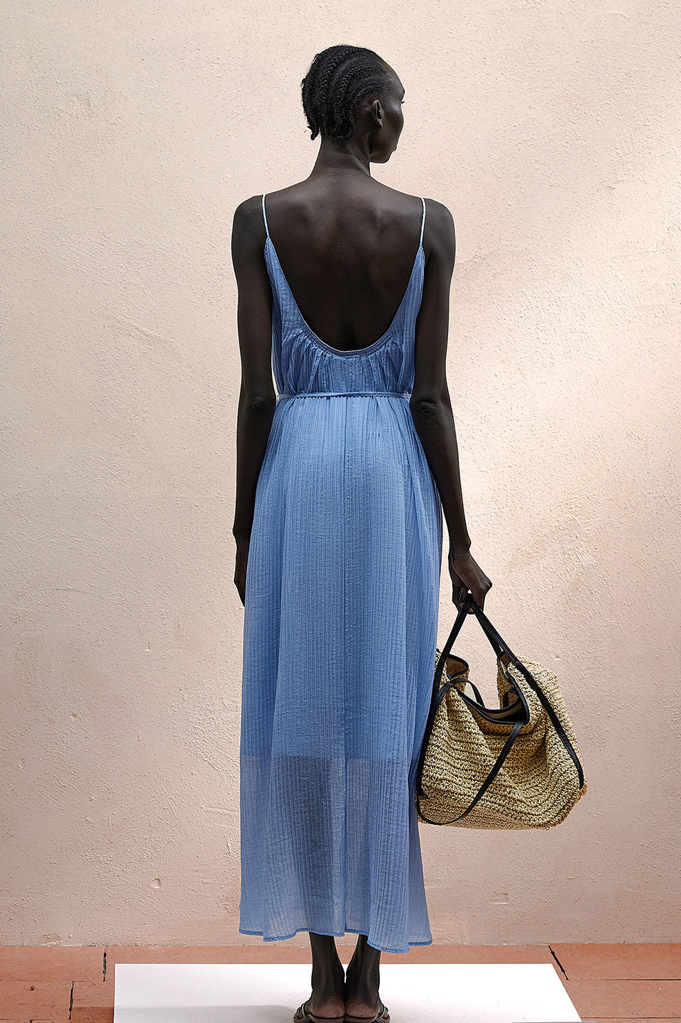Γυναικείο Φόρεμα αμάνικο πλισέ με τριράντες γαλάζιο Eleh