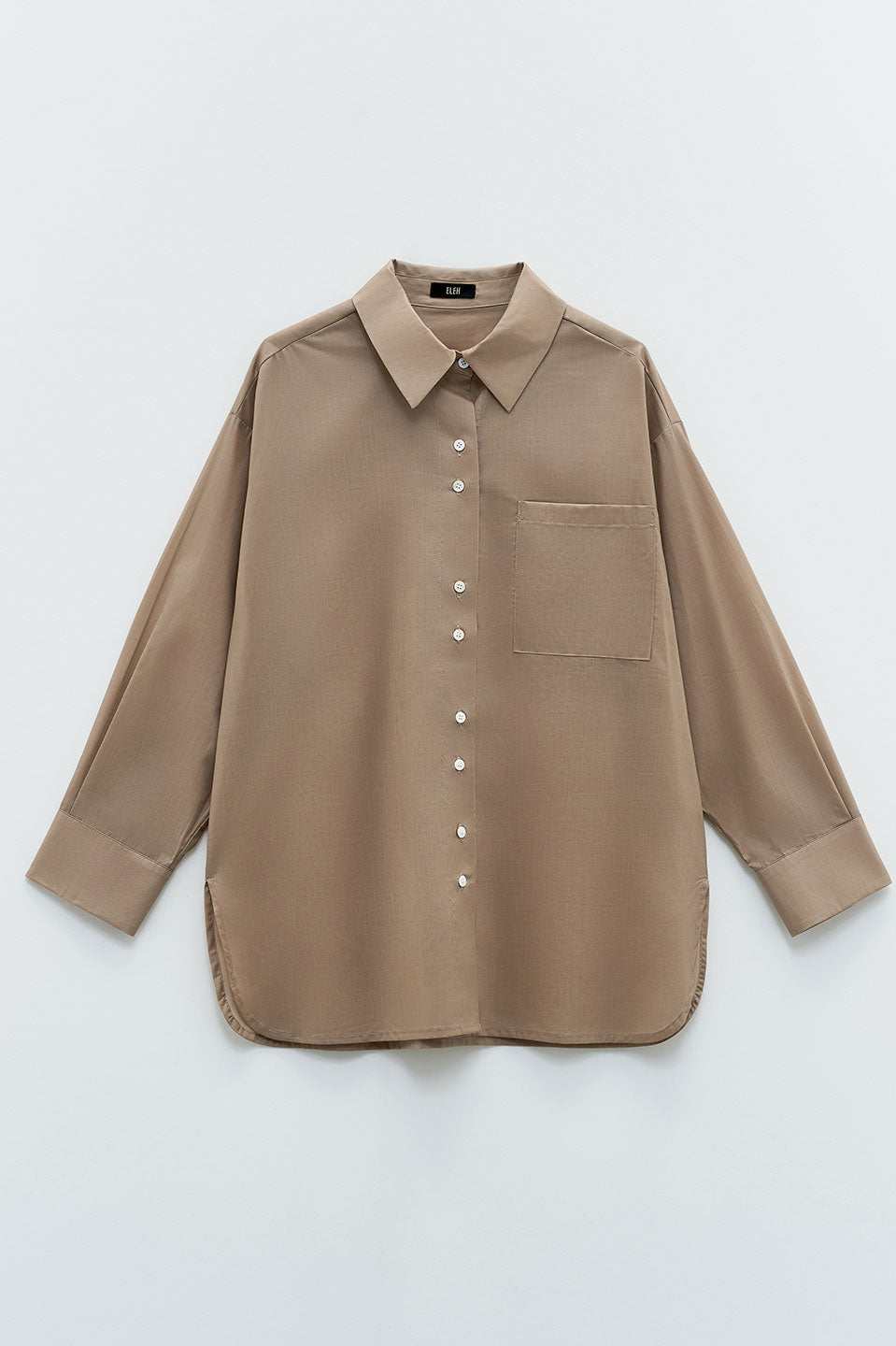 Γυναικείο πουκάμισο μακρυμάνικο σαφάρι κάμελ Eleh