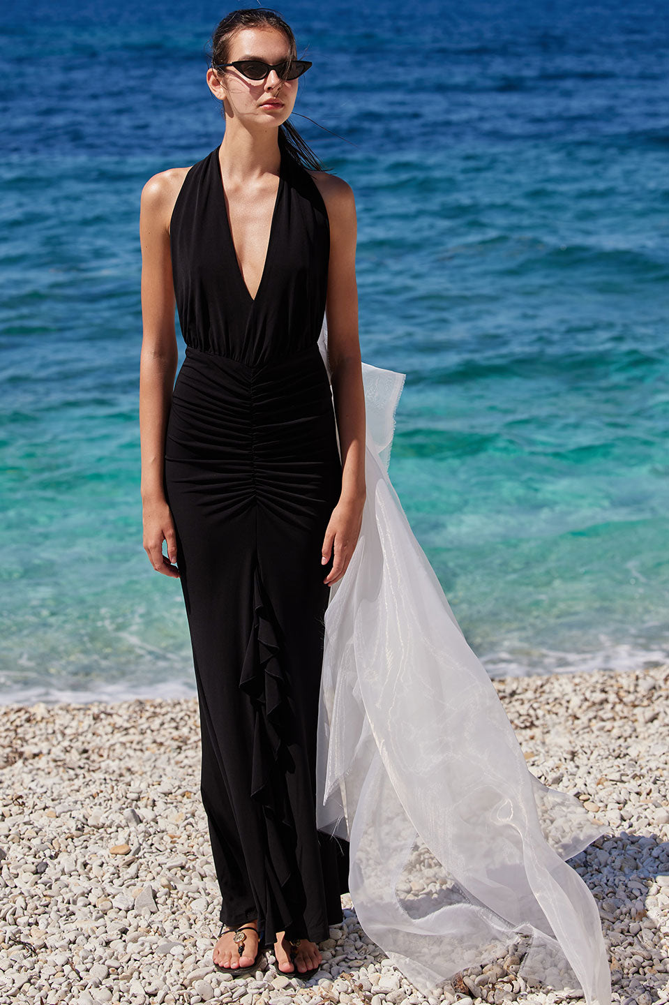 Γυναικείο Maxi φόρεμα με έξω την πλάτη επίσημο μαύρο Eleh