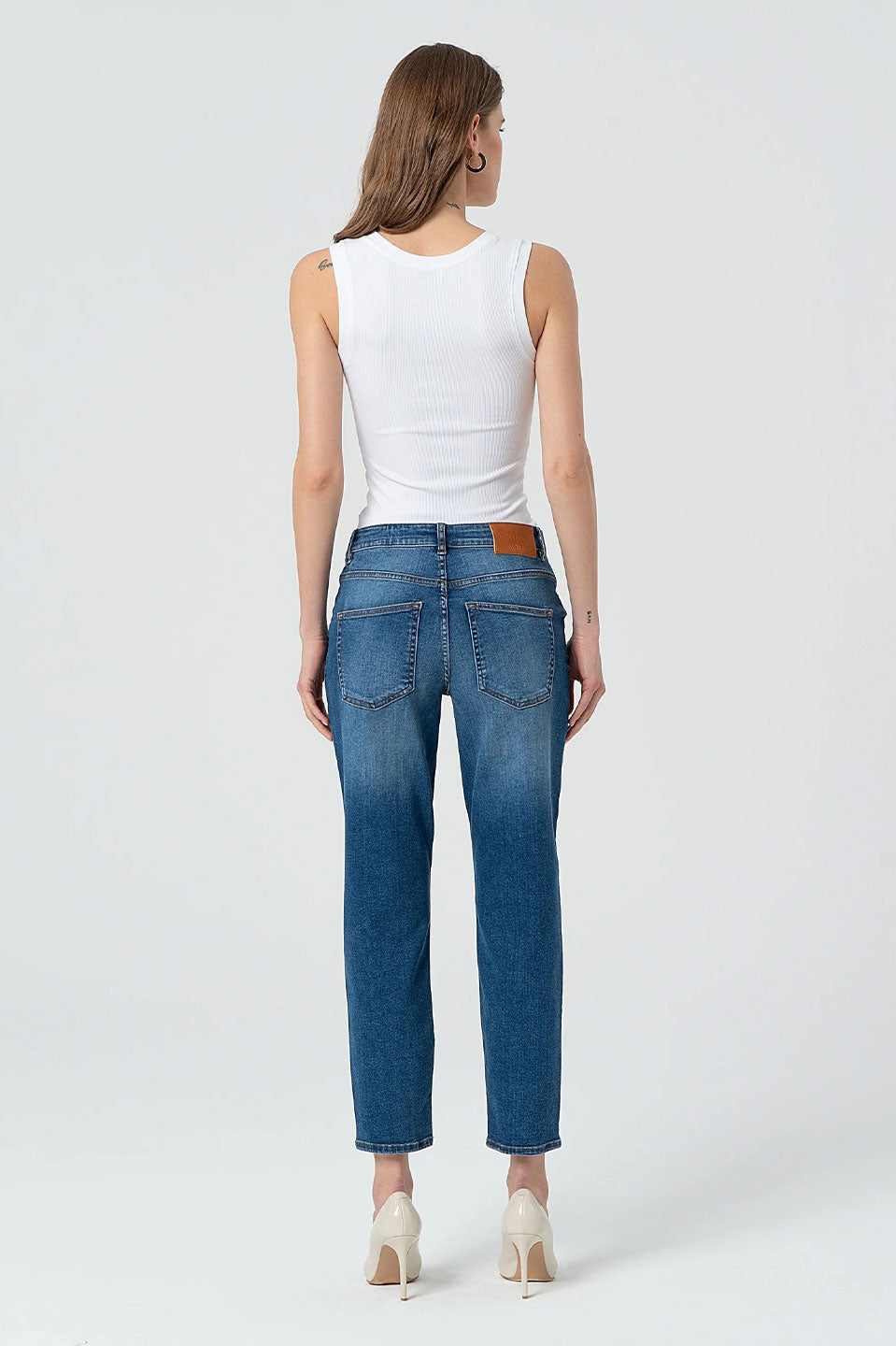 Γυναικείο τζιν παντελόνι Mom Fit σκούρο μπλε Fracomina