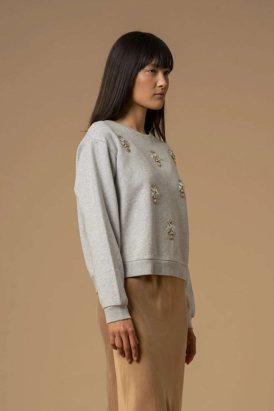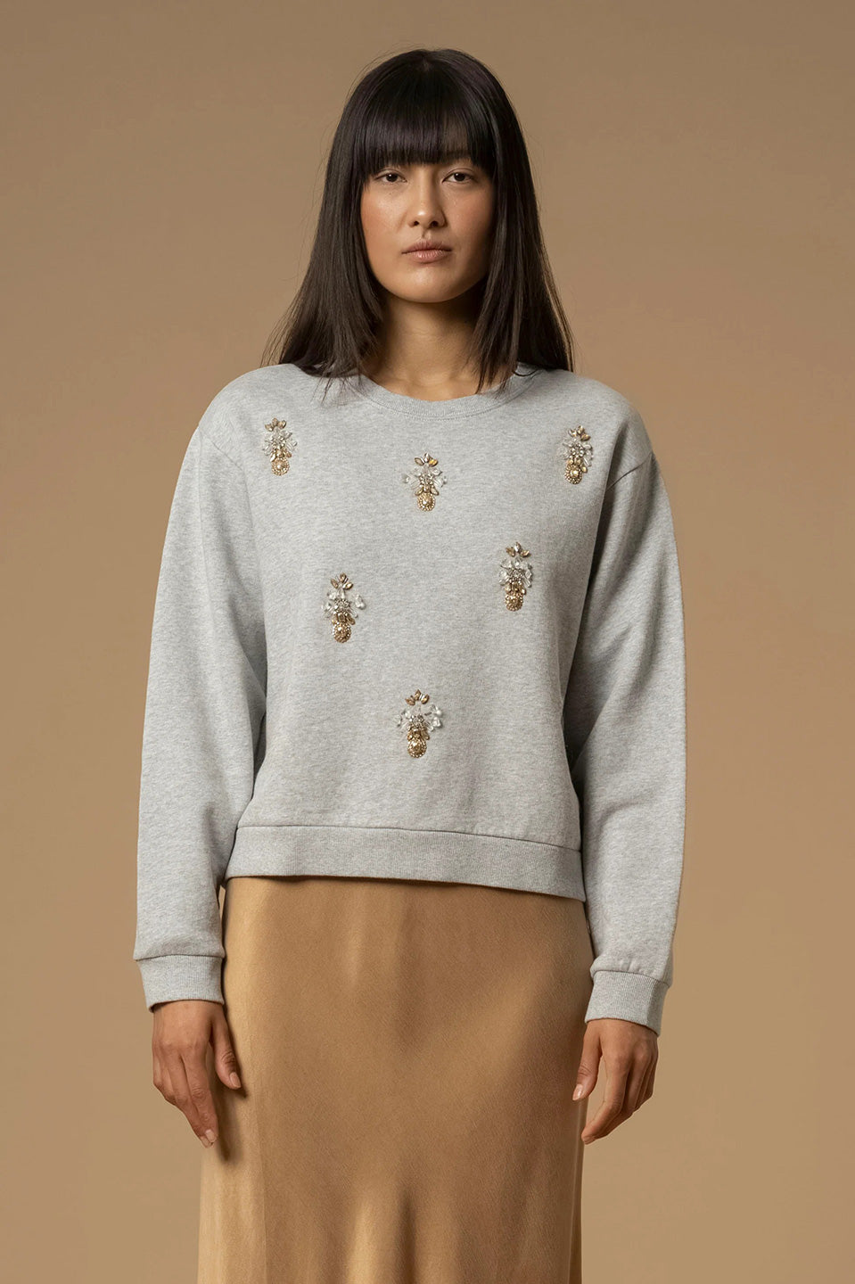 Γυναικεία μπλούζα πλεκτή με πέτρες γκρι μελαζέ Kocca