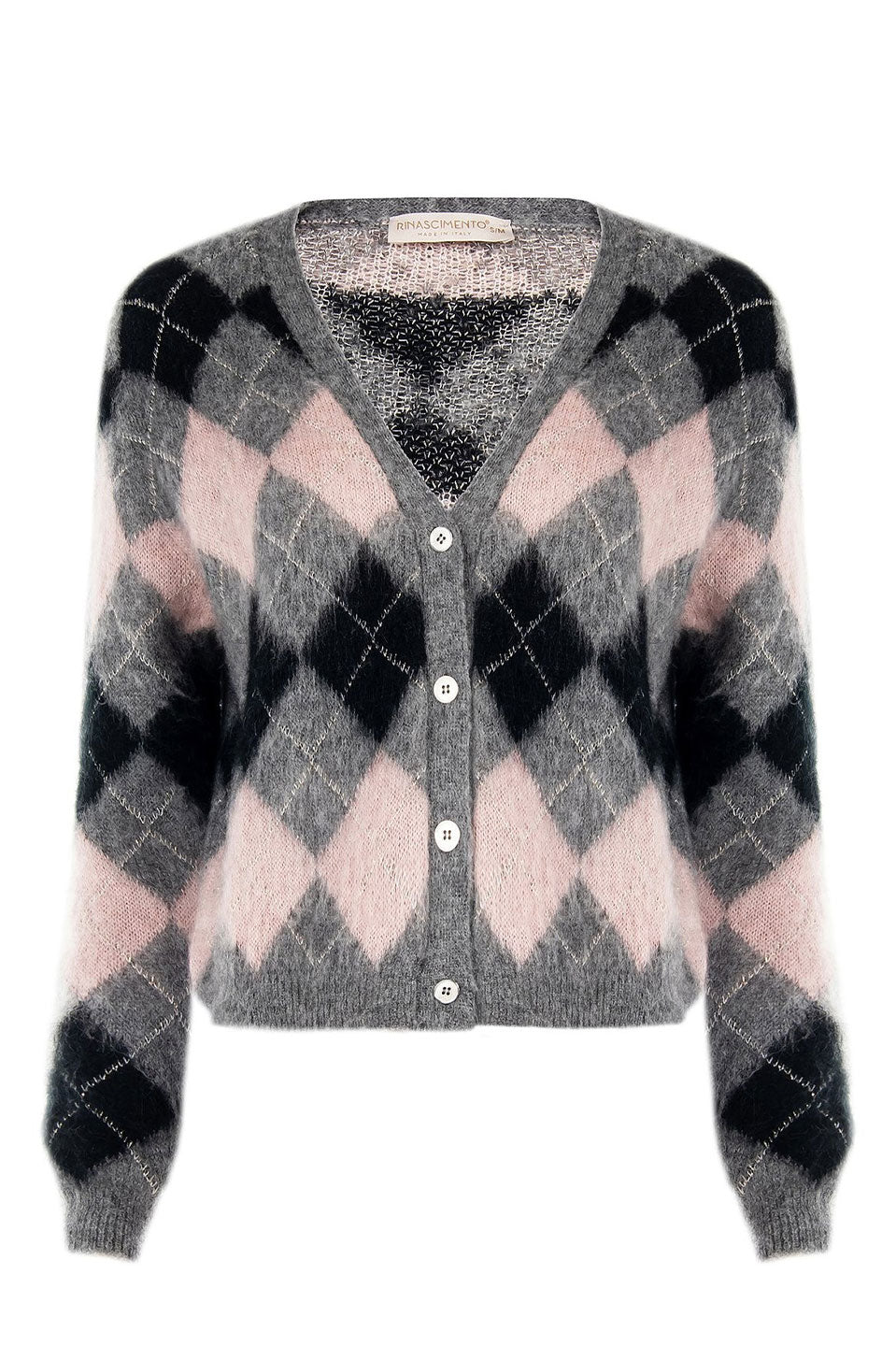 Γυναικεία ζακέτα πλεκτή ροζ-γκρι Rinascimento