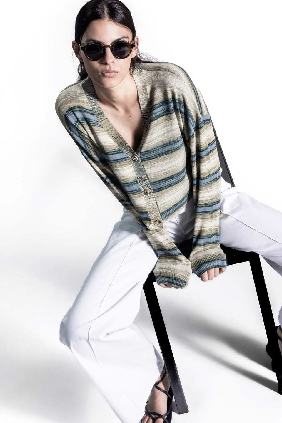 Γυναικεία Πλεκτή ζακέτα ριγέ πράσινο Sandro Ferrone