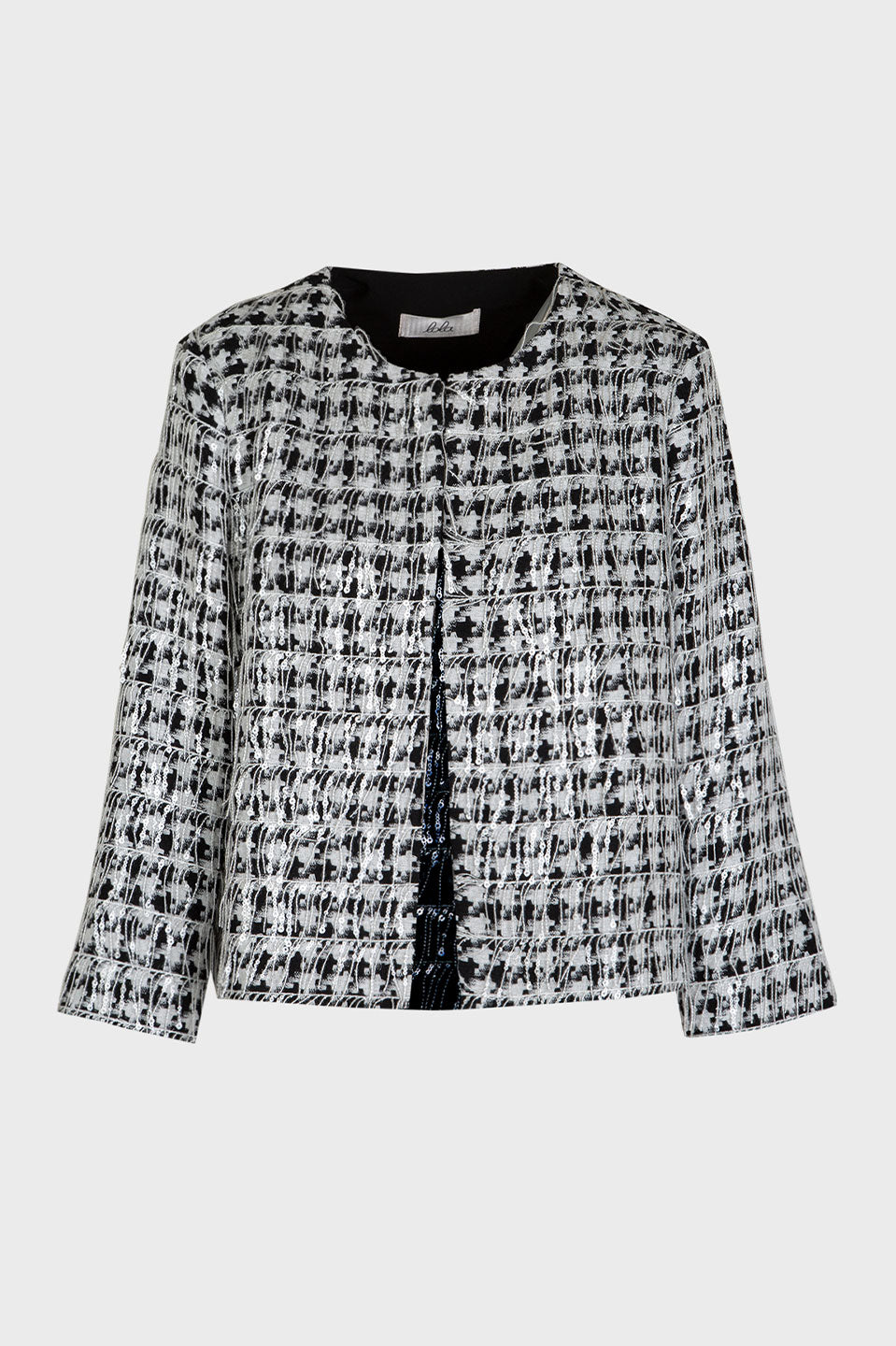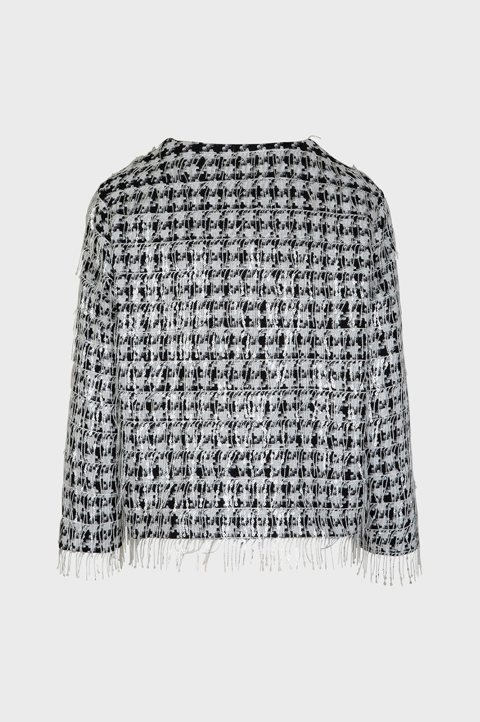 Γυναικείο Σακάκι με ύφανση και παγιέτα λευκό-μαύρο Sandro Ferrone Lola