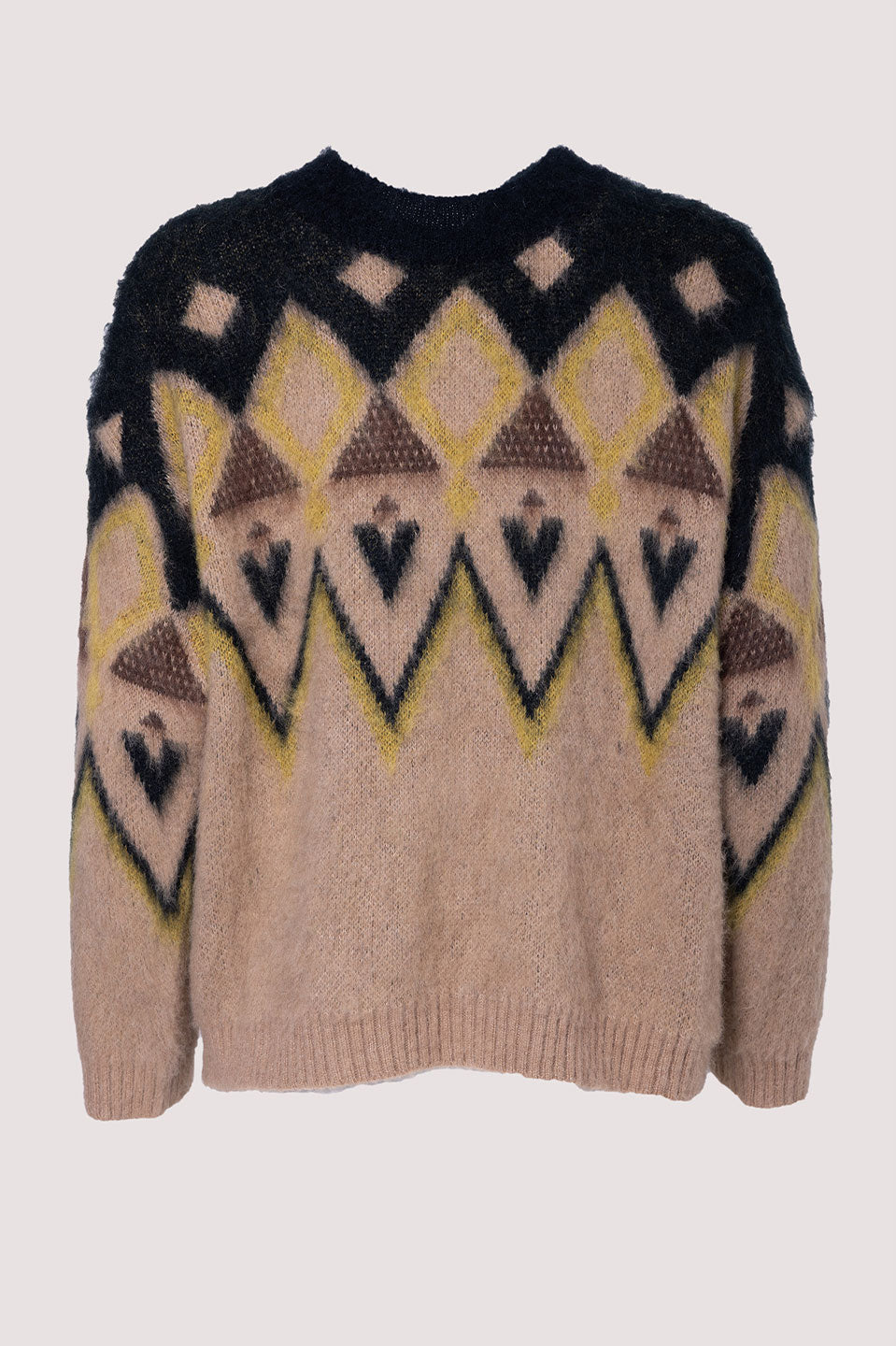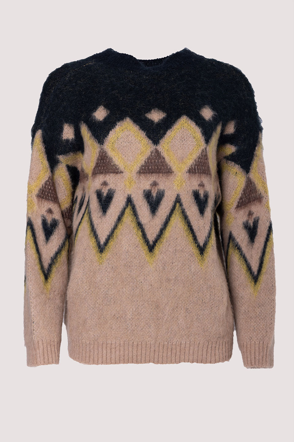 Γυναικεία μπλούζα πλεκτή με σχάδια μαύρη-καφέ Tensione In