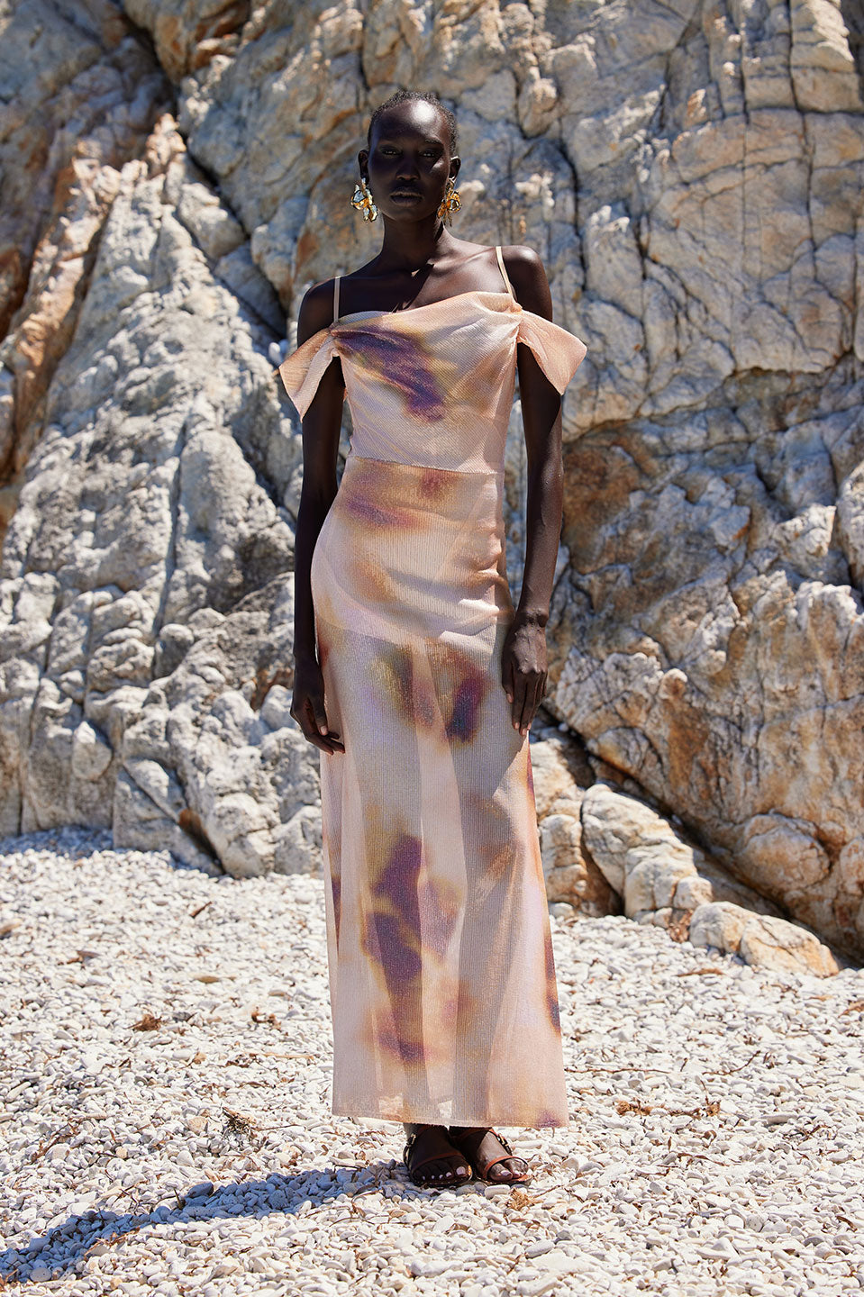 Γυναικείο φόρεμα επίσημο με λεπτές τιράντες και pattern Eleh