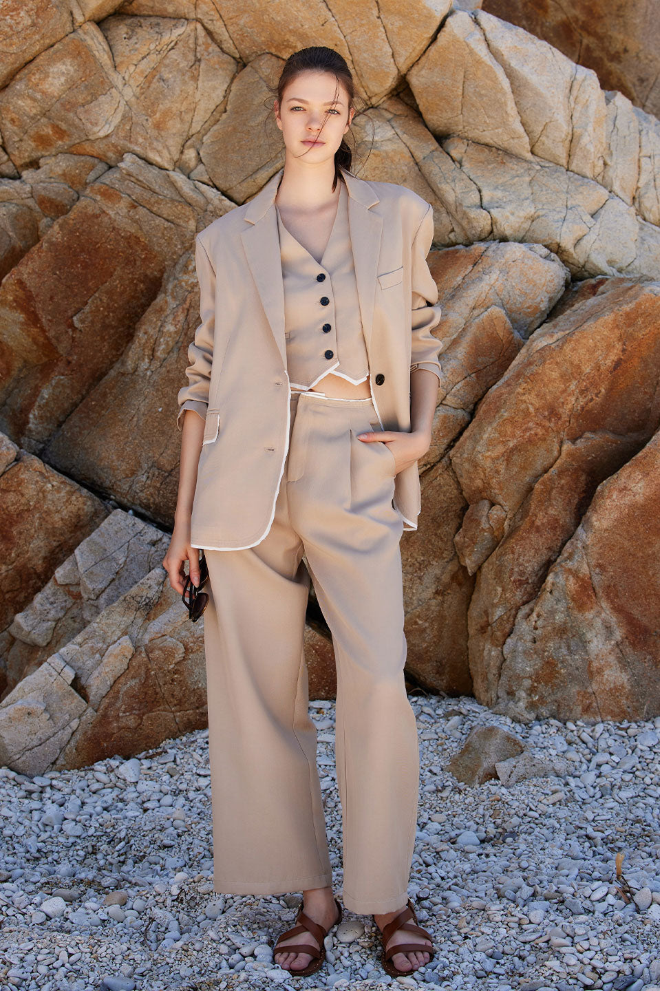 Γυναικείο Γιλέκο μεσάτο με κουμπιά κάμελ Eleh