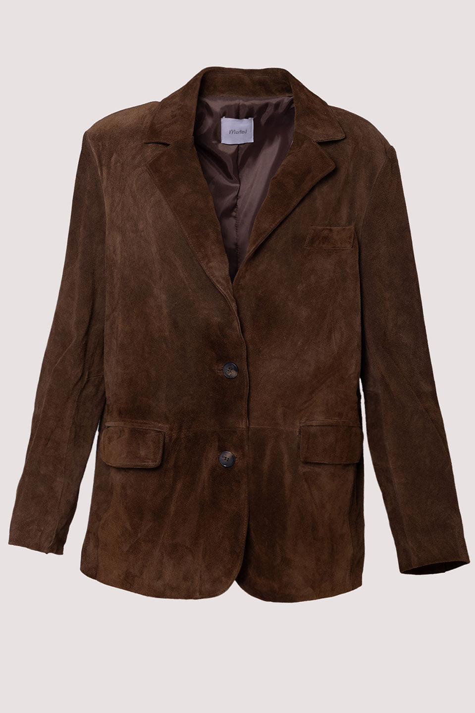 Γυναικείο σακάκι από 100% δέρμα καφέ Motel