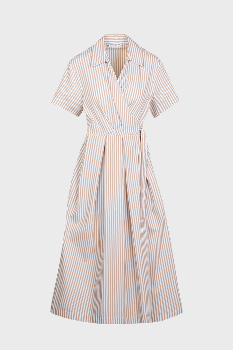 Γυναικείο Φόρεμα Α γραμμή από ποπλίνα με ζών ριγέ μπεζ Sandro Ferrone Lola