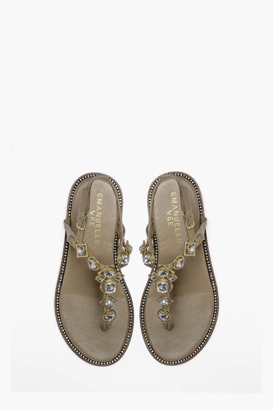 Γυναικεία Παπούτσια πέδιλα με πέτρες μπεζ Emanuelle Vee