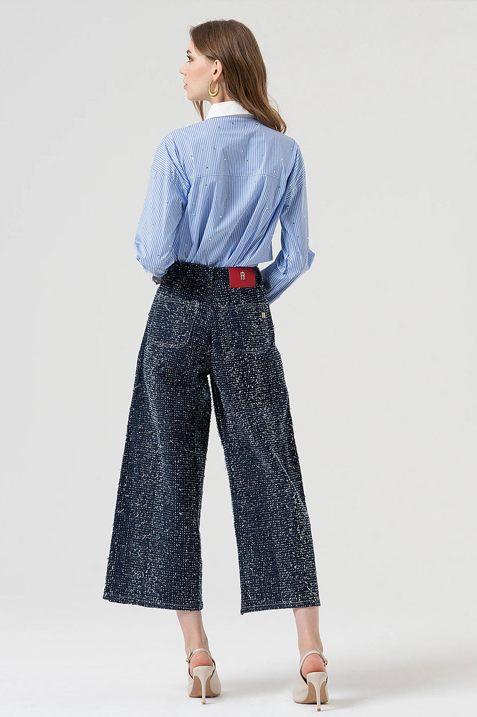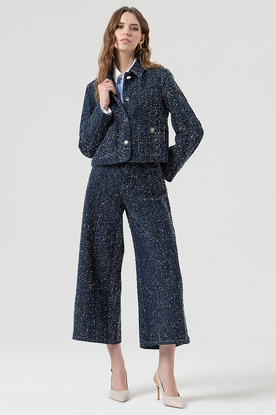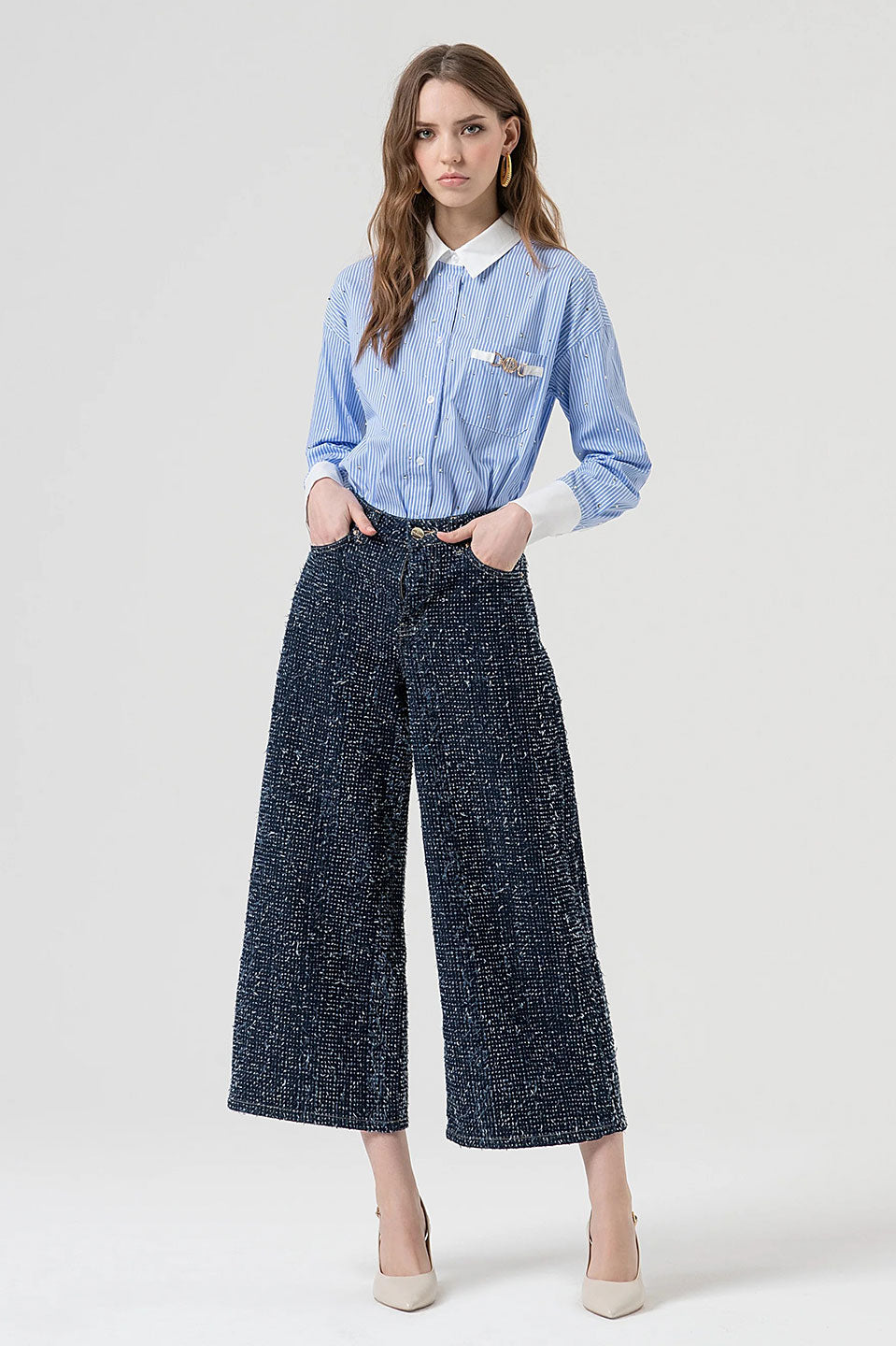 Γυναικείο παντελόνι zip culotte με δομή μπλε σκούρο Fracomina