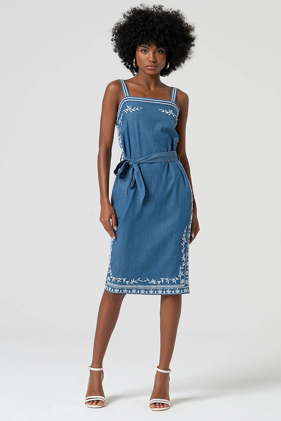 Γυναικείο φόρεμα με κέντημα μπλε Fracomina