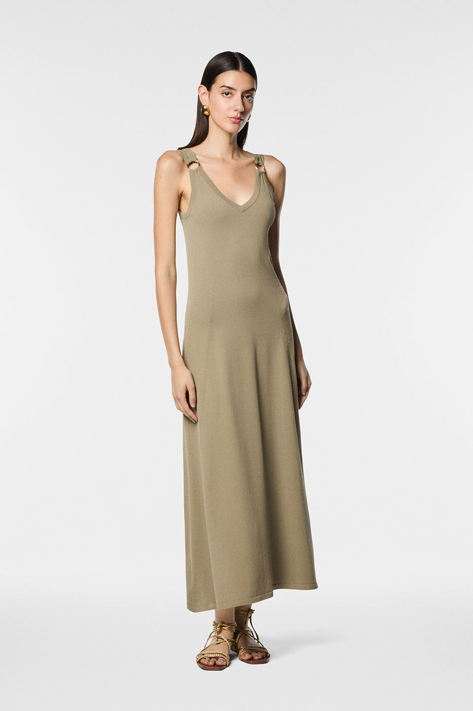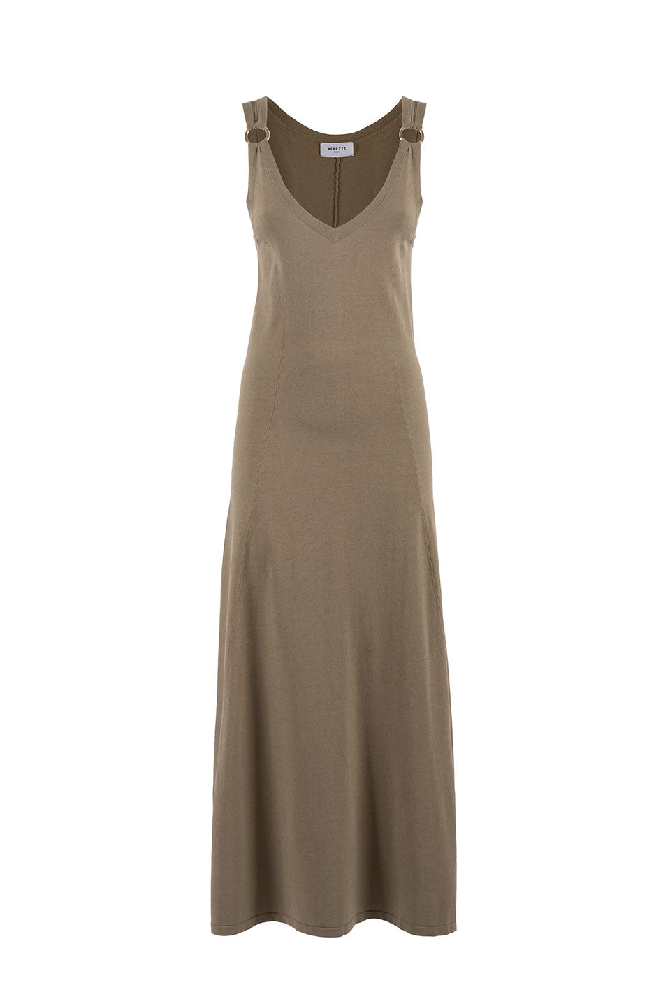Γυναικείο Maxi φόρεμα με κρίκους χακί Nenette